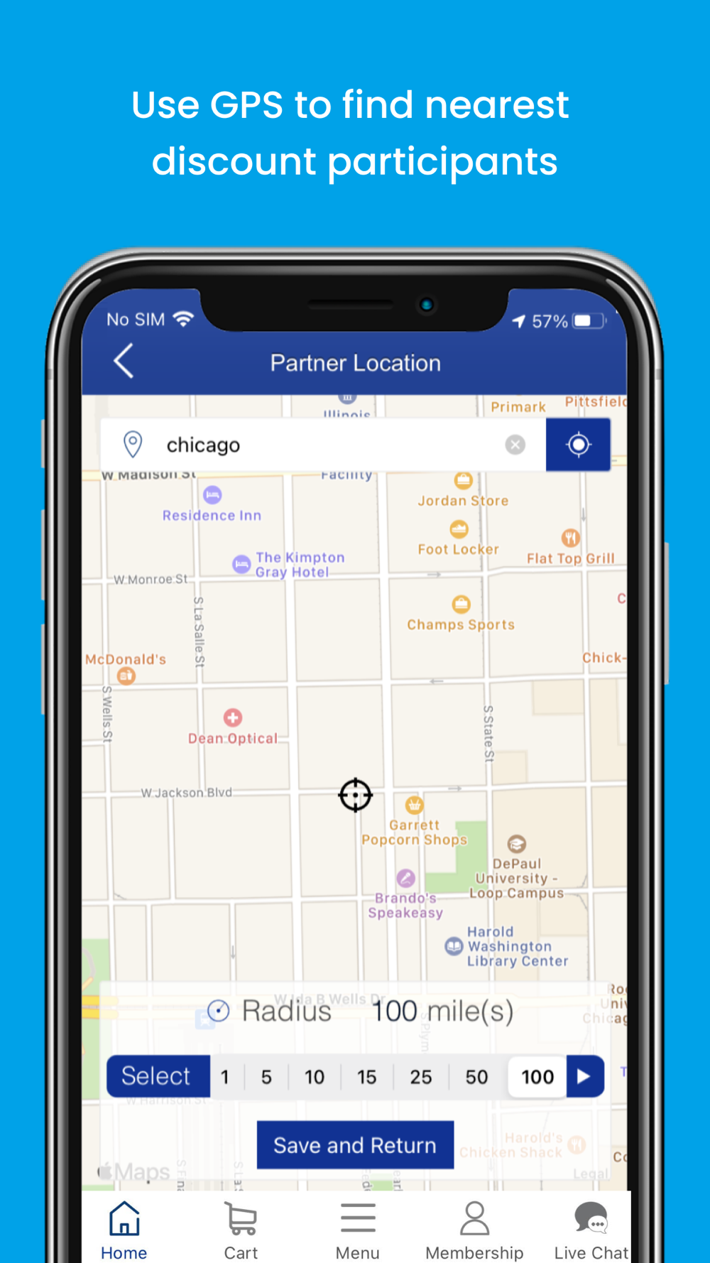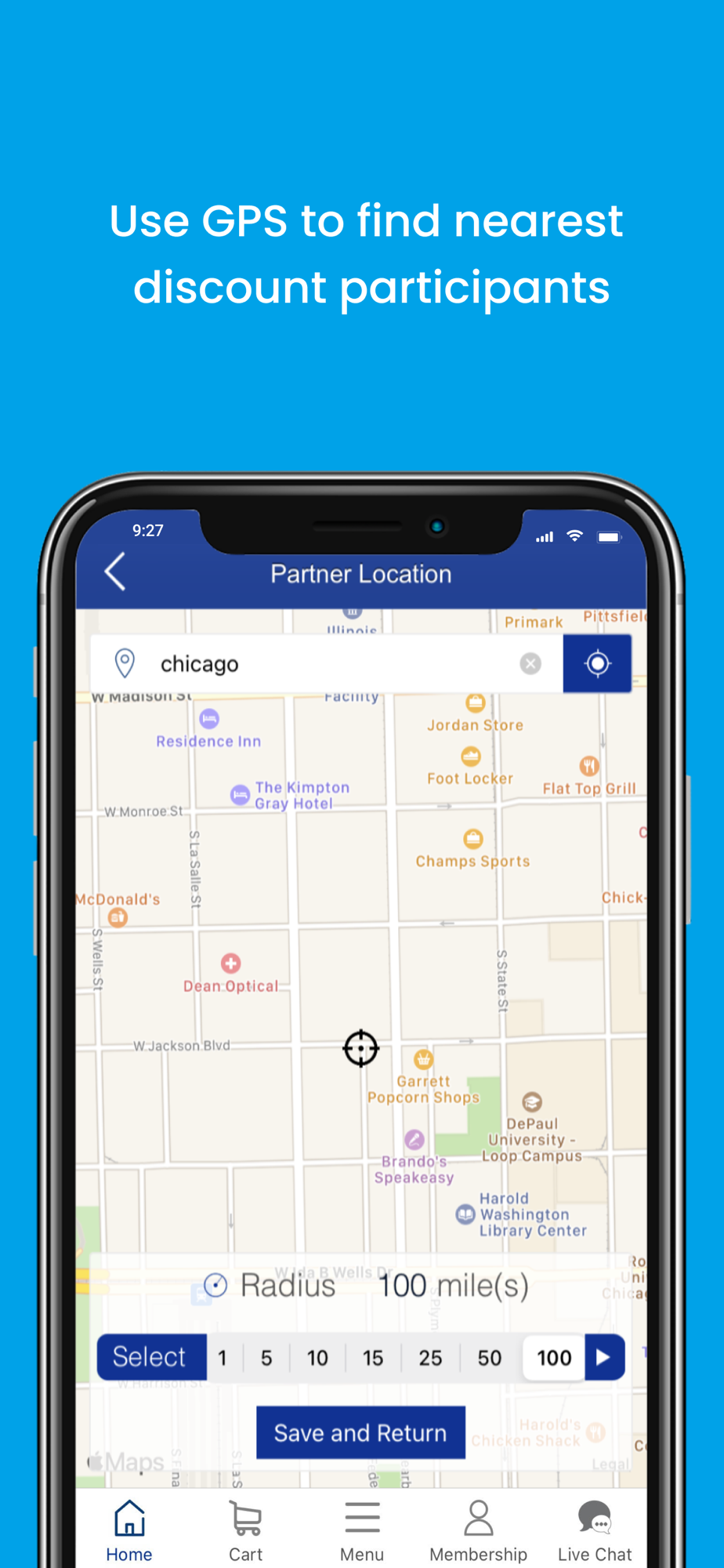 GPS location search to navigate deals nearby or wherever you travel