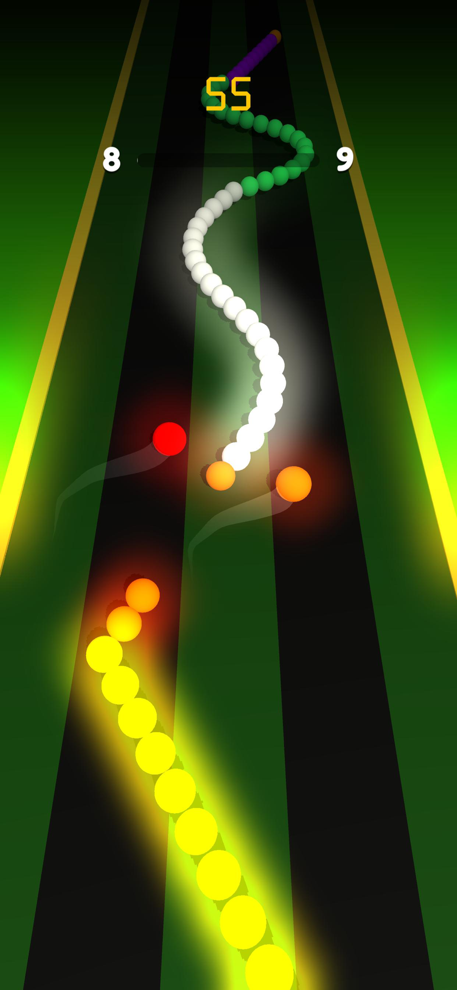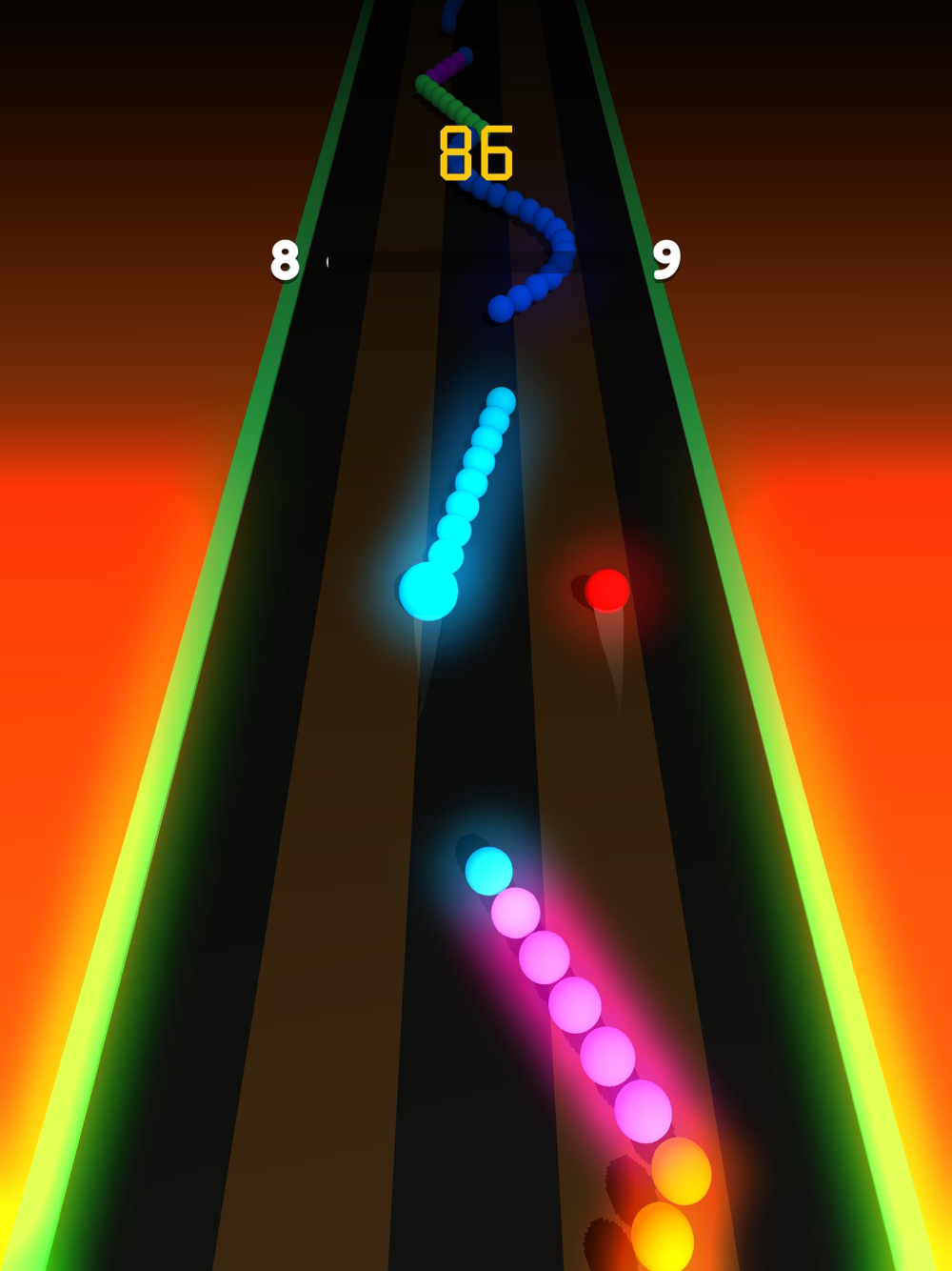 The operation is very simple, sliding the screen to control the left and right movement of the two balls, the key to the game when mastering the rhythm;