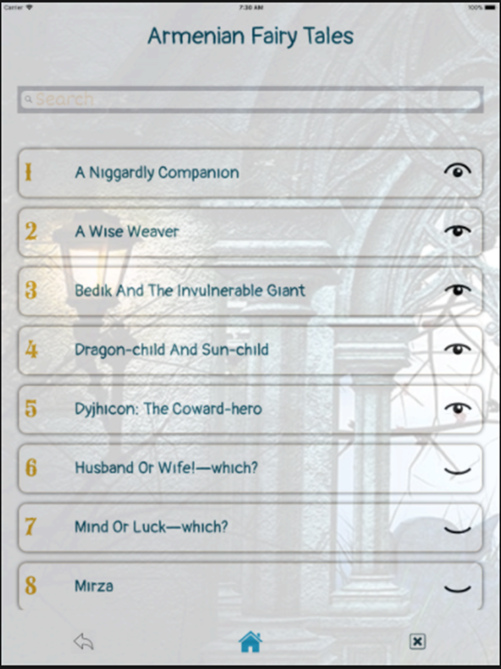 In this application, Armenian folk tales, stories, narratives are included. The application is designed in 5 languages. 20 fairy tales in Turkish, 90 in Russian, 30 in English, 25 in French and 60 in Armenian were added to the application. You can listen or read Armenian fairy tales with the application.