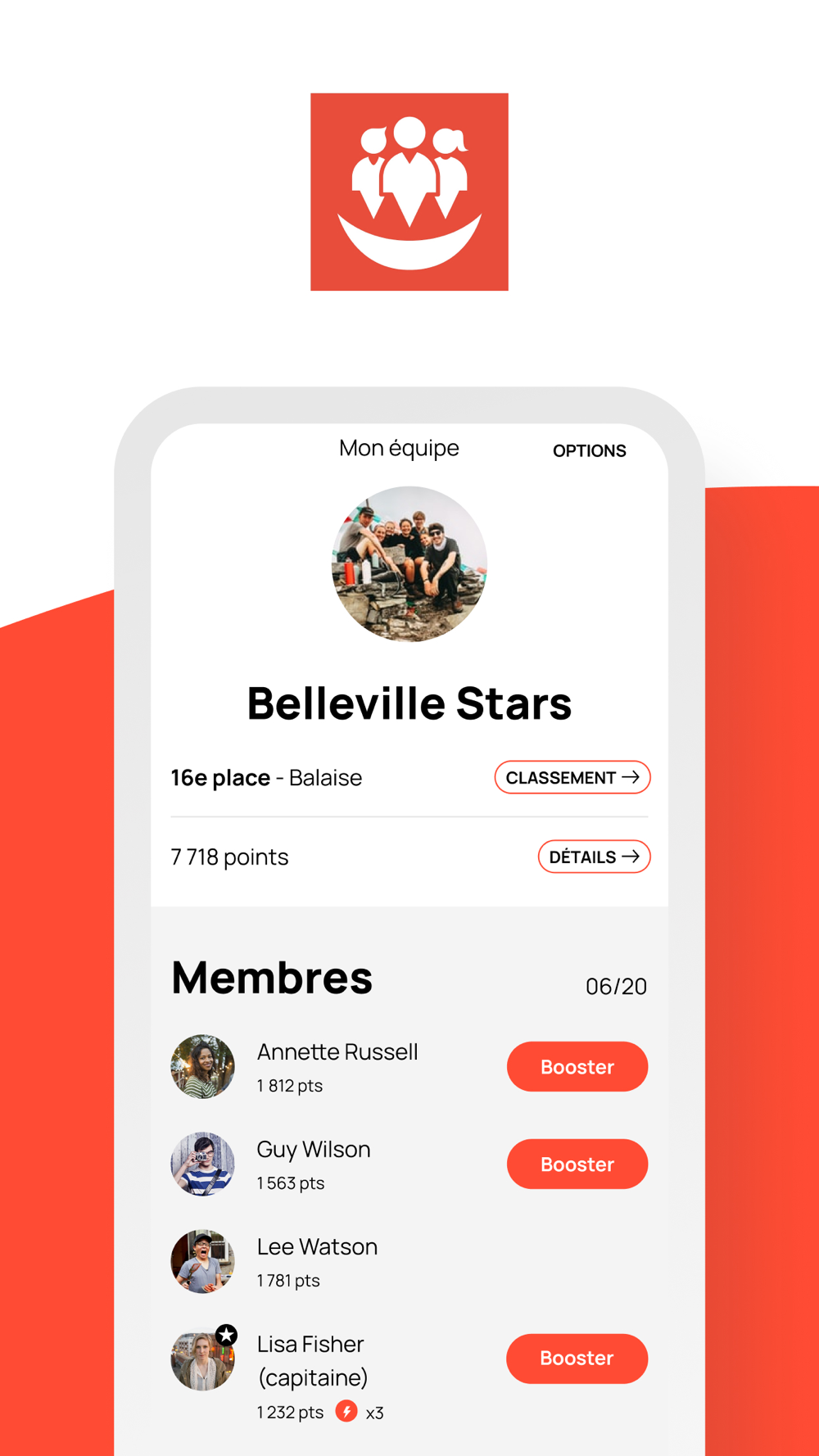Même si tu ne fais pas de sport, encourage tes coéquipiers grâce au chat intégré de l’application et booste-les grâce à des pouvoirs magiques !