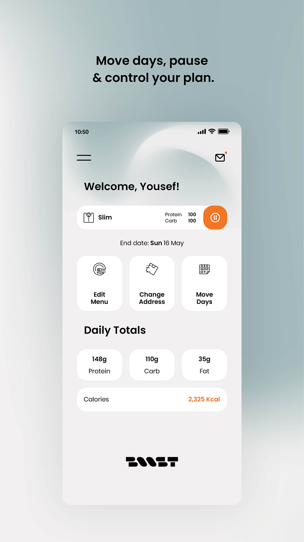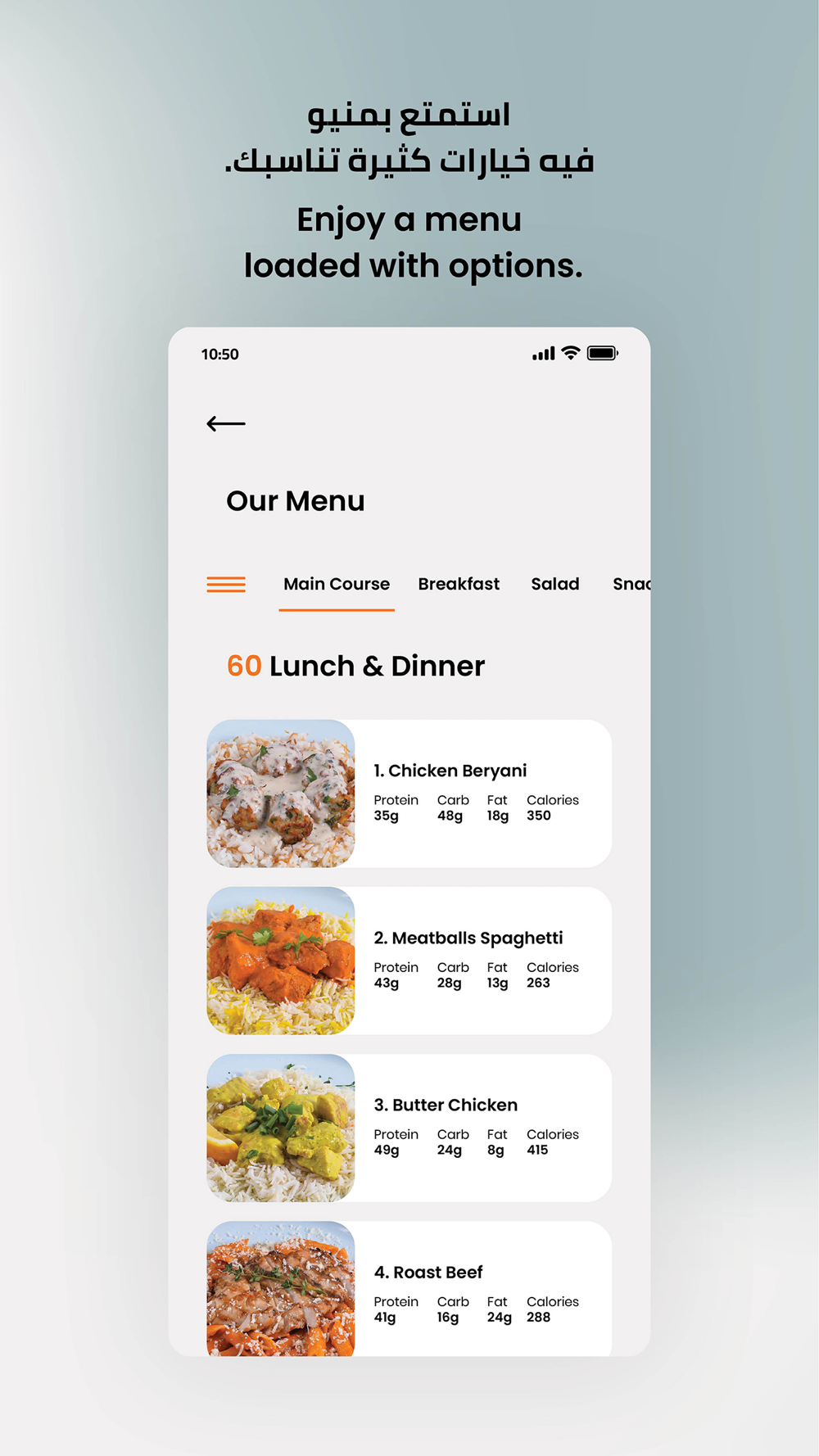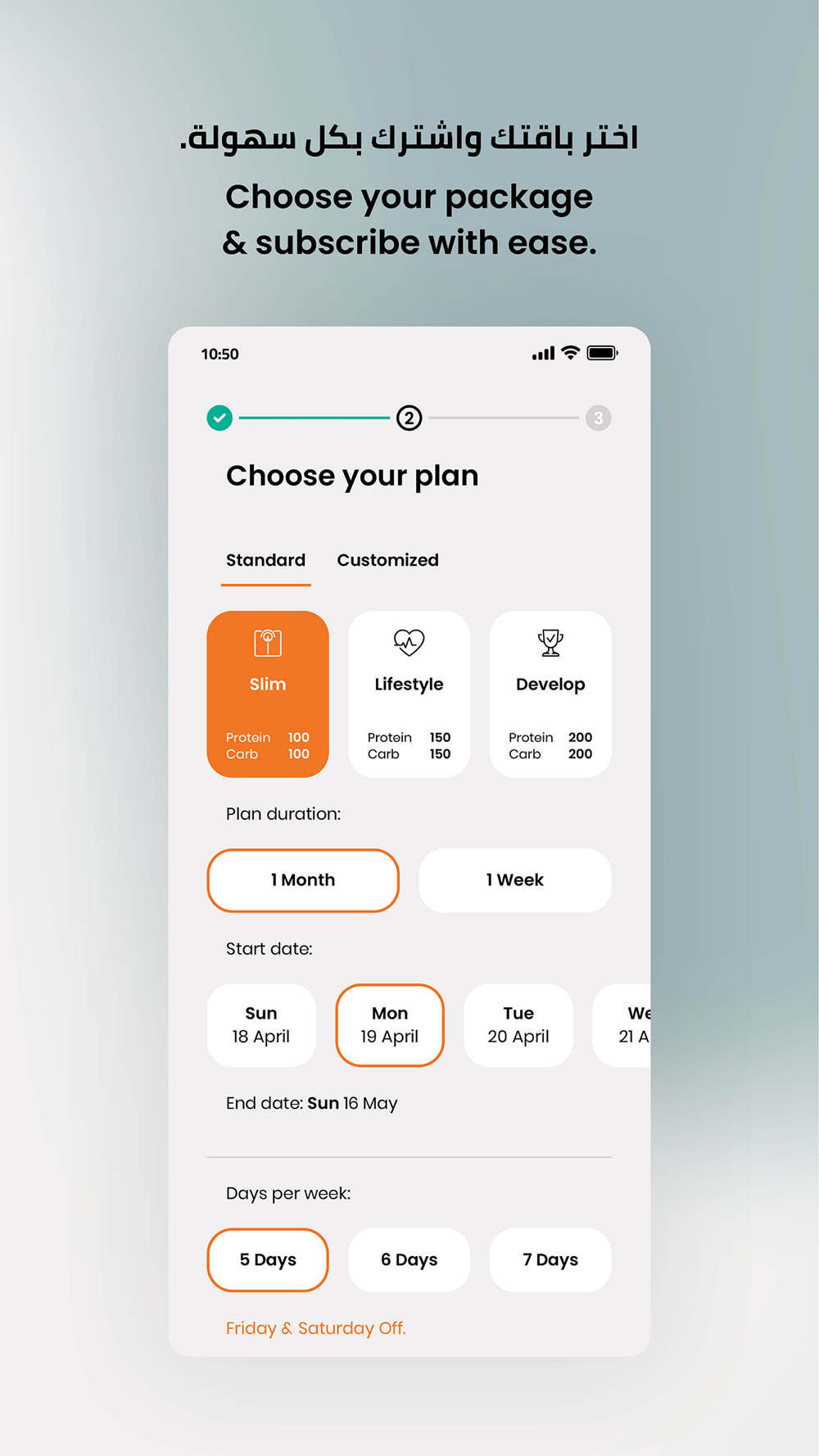 We created this app to change your life, as our packages allow you to attain a healthy lifestyle or plan your diet easily and effectively, whenever and however you want. Using our application is a piece of cake: all you have to do is follow the instructions specifically tailored to you, as you have the liberty to pause, change or modify your package as you please. Our packages are loaded with a wide variety of meals cooked with fresh, halal and high quality products as they take part in our ever-evolving menus that aim to meet your needs and, by all means, your expectations!