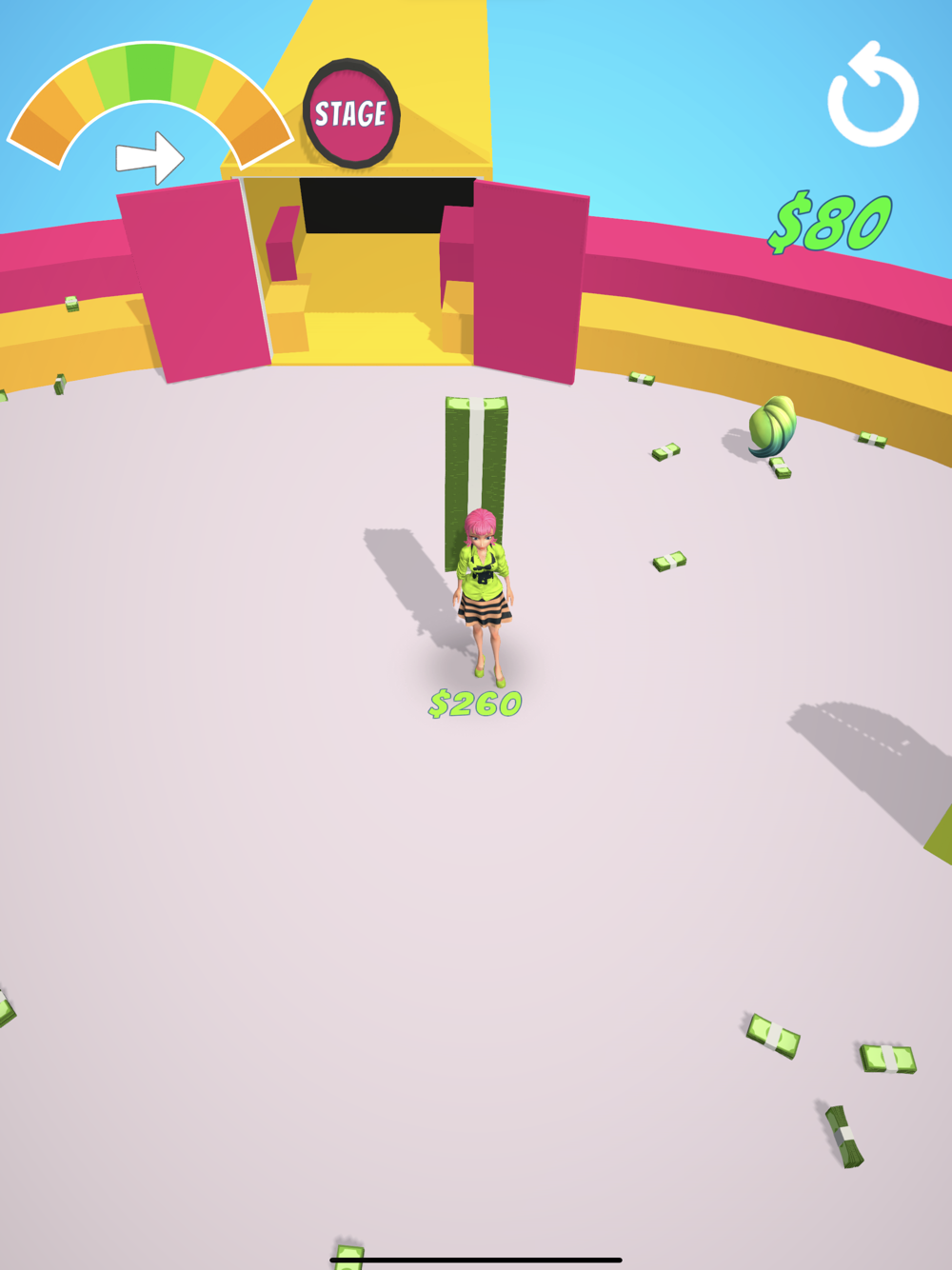 Collect money and by using collected money, get your clothes. Do not forget, in the end, you are going to walk on the stage.