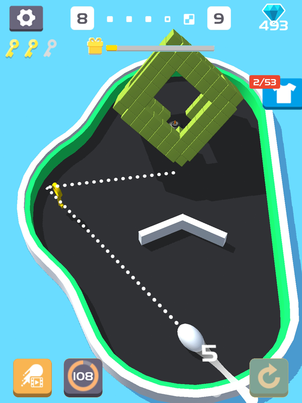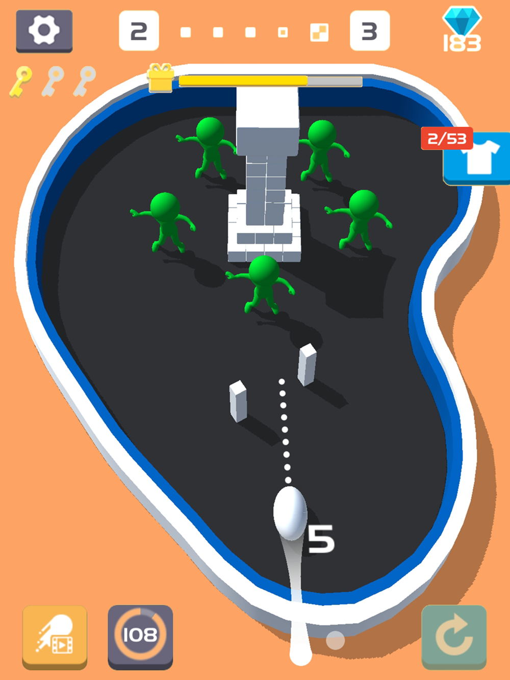 操作小球,瞄准目标,蓄力、发射!摧毁关卡中所有的物体!