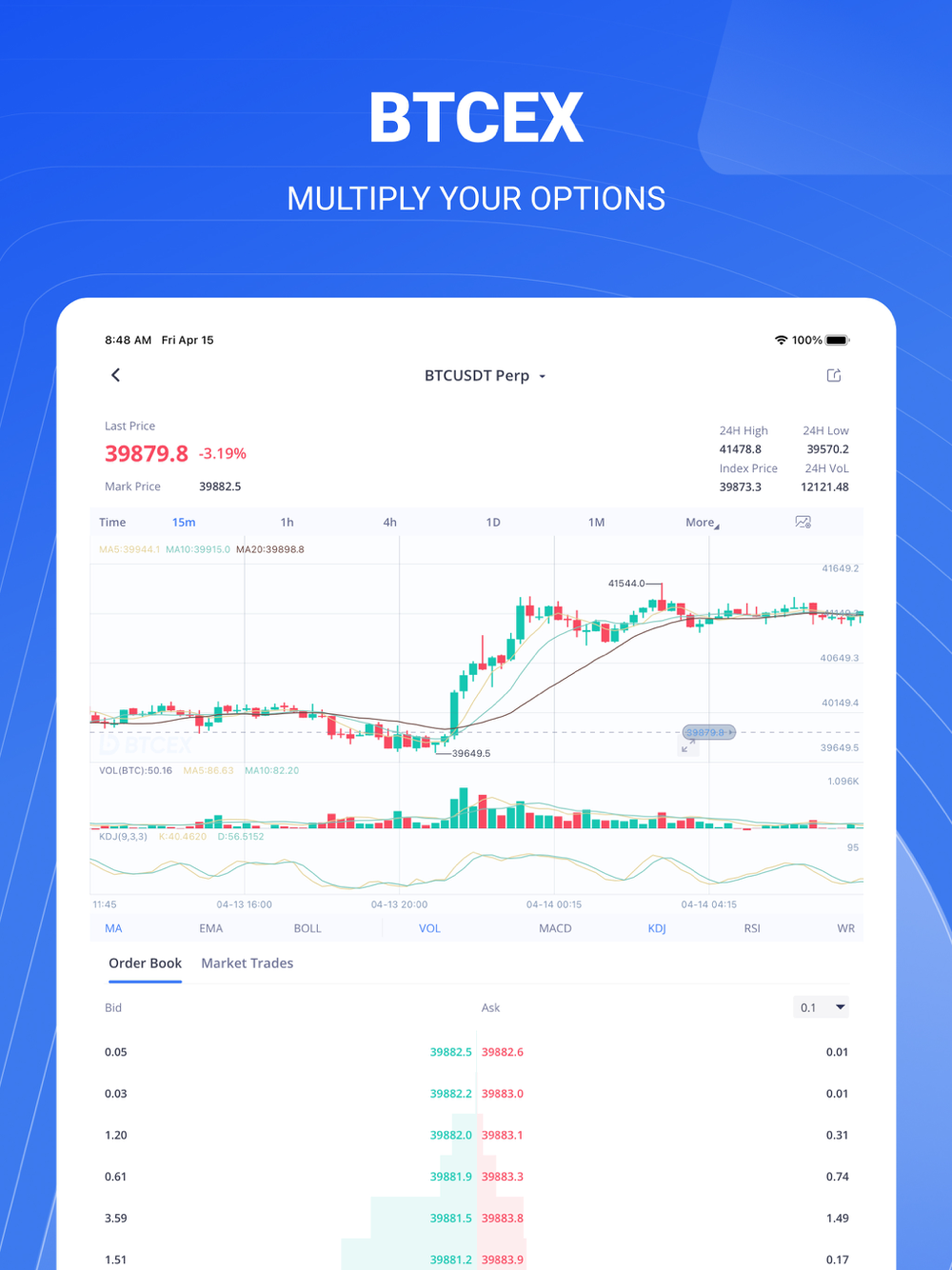 BTCEX là một trong những nền tảng giao dịch tiền điện tử phát triển nhanh nhất với sản phẩm đầy đủ các loại. APP BTCEX exchange cho phép bạn giao dịch các loại tiền điện tử hàng đầu như Bitcoin (BTC) và Ethereum (ETH). Tải xuống và tận hưởng các dịch vụ chuyên nghiệp, an toàn, thân thiện với người dùng với mức phí thấp nhất trên BTCEX.