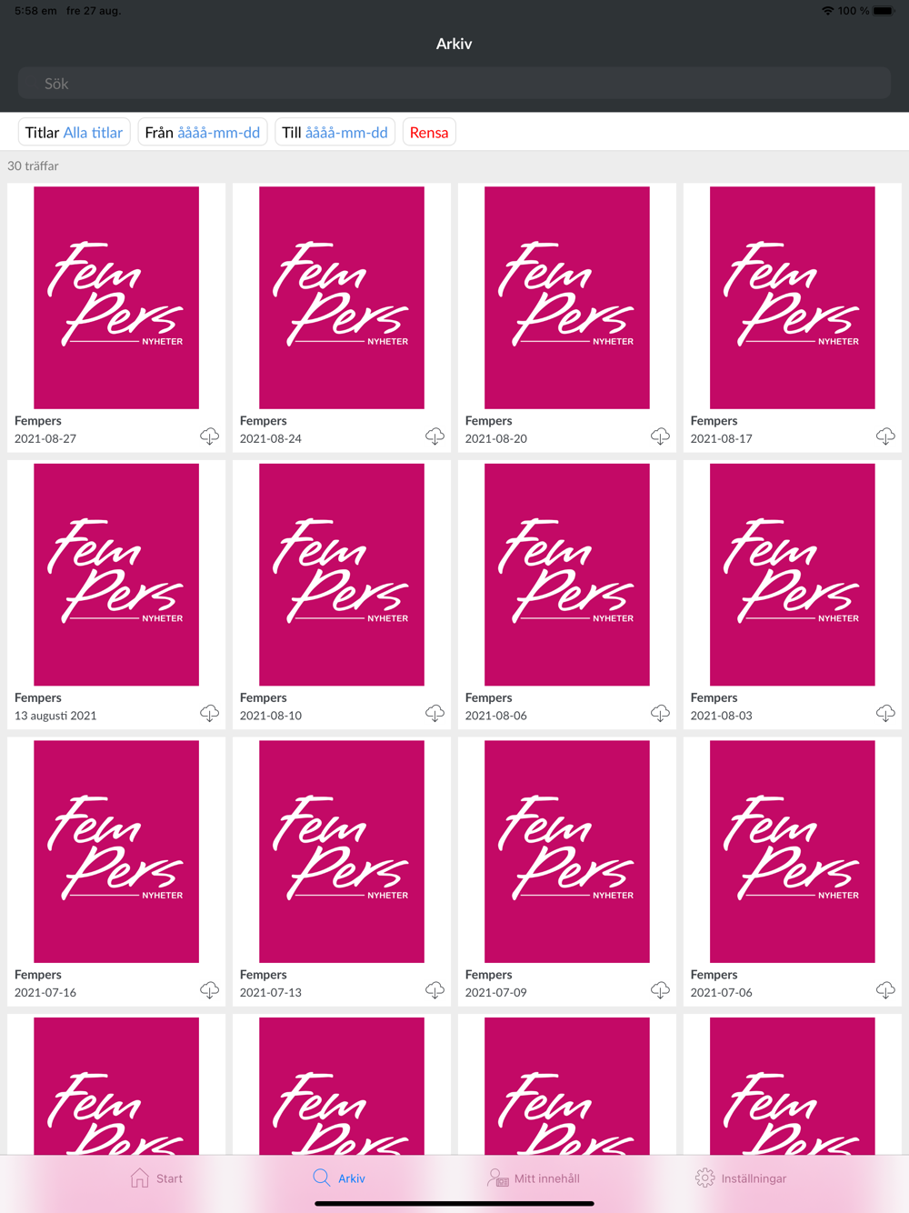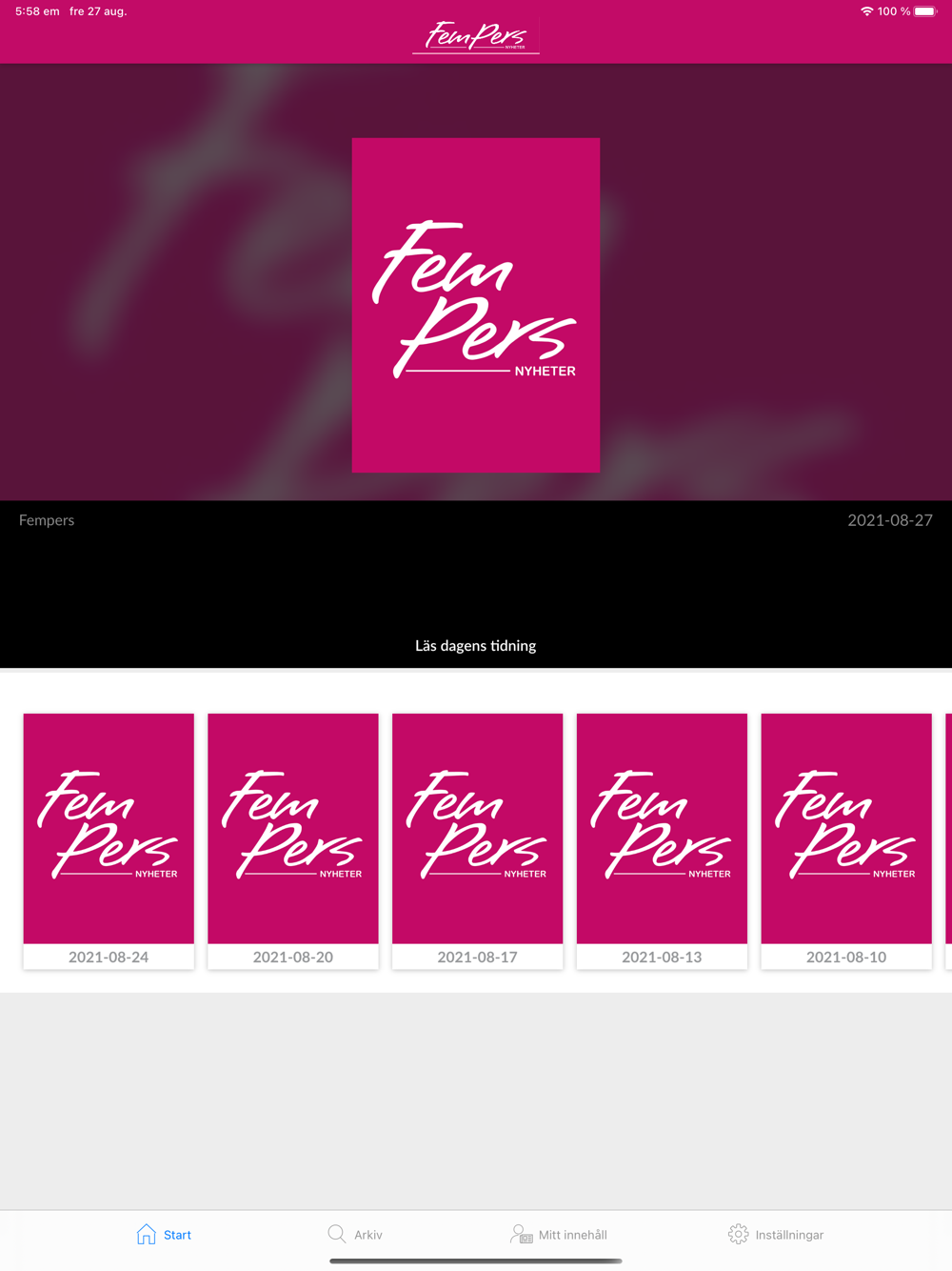 Fempers Nyheter innehåller också kalendarium, krönikor och debatt.
