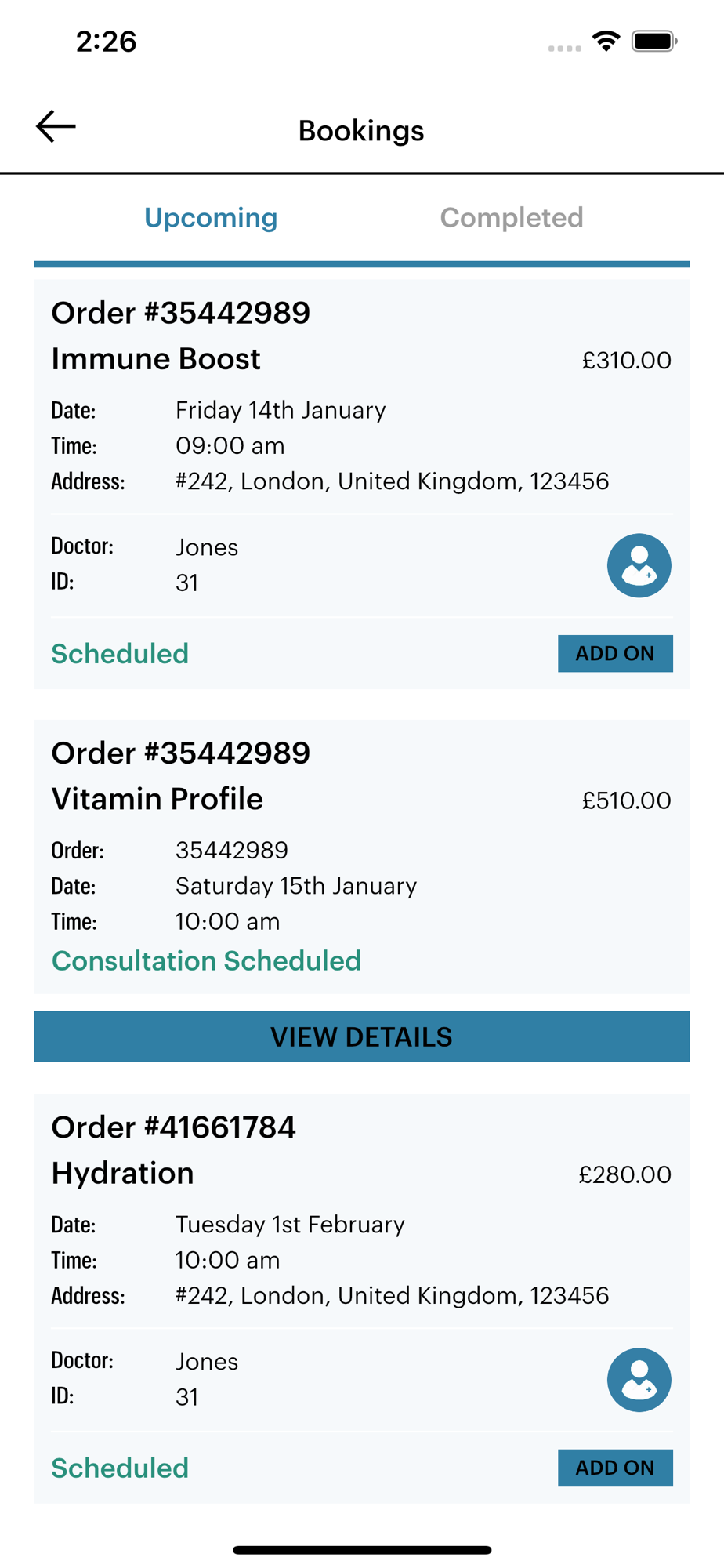 The app offers a personalized calendar and advanced booking system which keeps your details and helps you manage your ongoing or upcoming treatments, tests, or consultations.