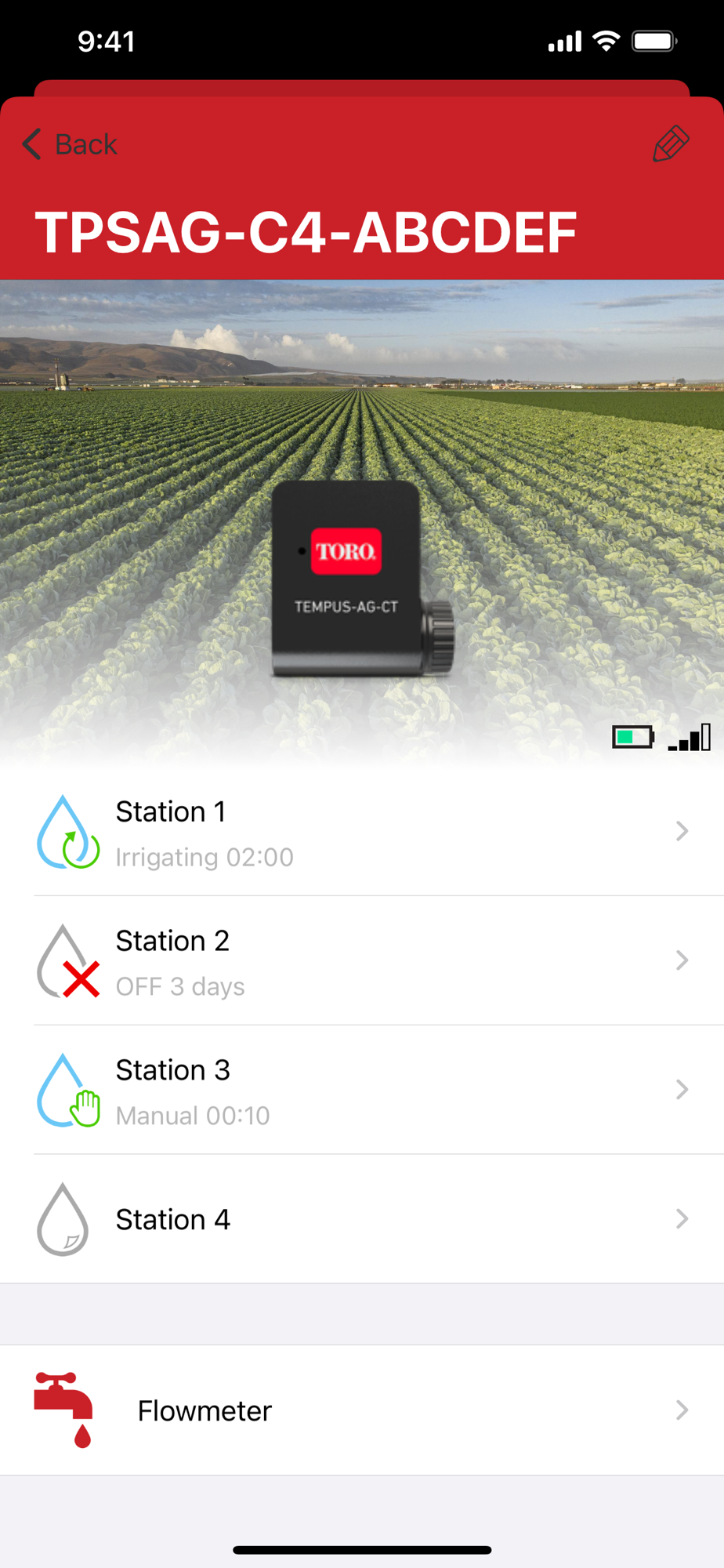 Water proof devices are powered via 9V battery for easy and flexible installation. Base station has the option to be solar powered. System modularity allows for growth of devices over time. Take full control of your system ranging from pressure and water flow to humidity and soil temperature, all controlled via free and intuitive MyToroTempus App or web interface.