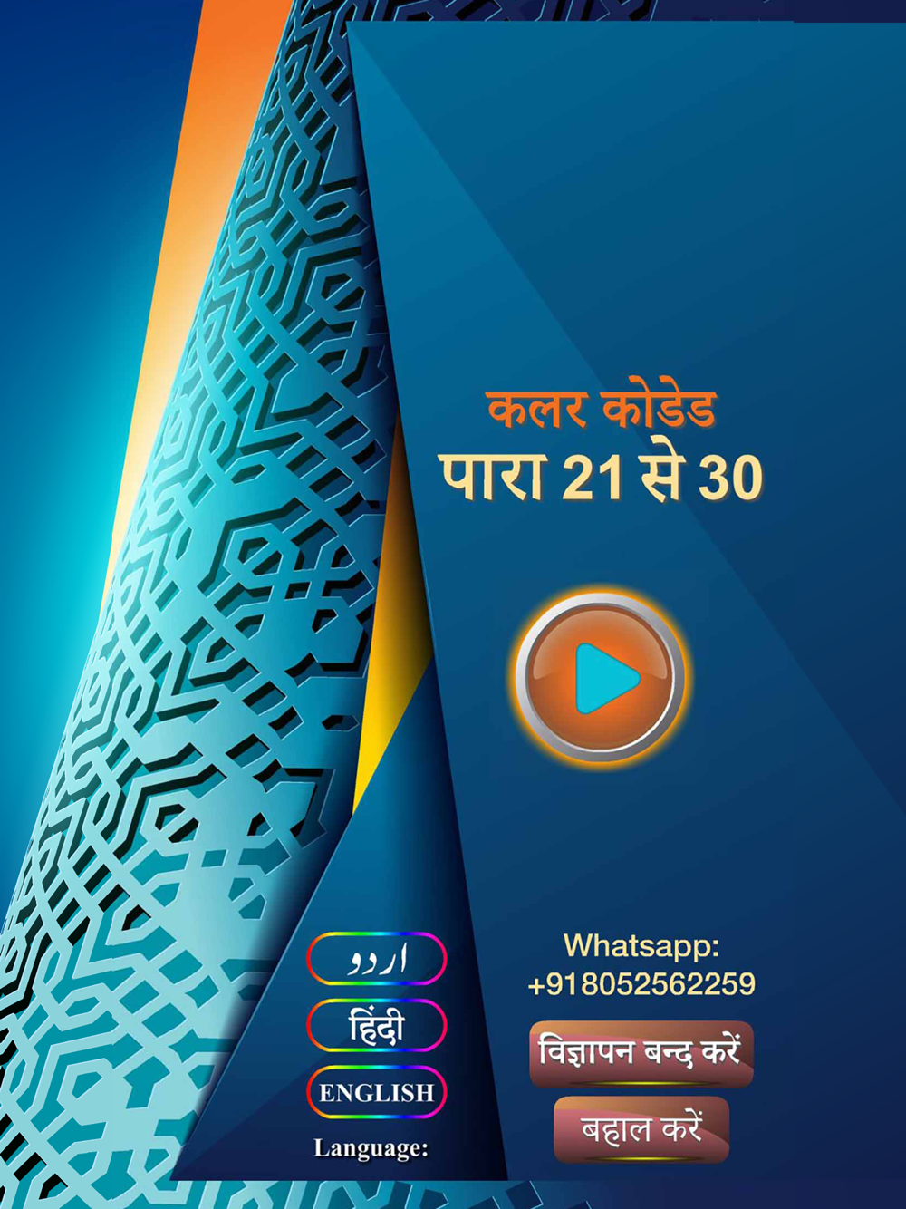 In other words, application has Juz' 21, Juz' 22, Juz' 23, Juz' 24, Juz' 25, Juz' 26, Juz' 27, Juz' 28, Juz' 29 and Juz' 30 in this part.