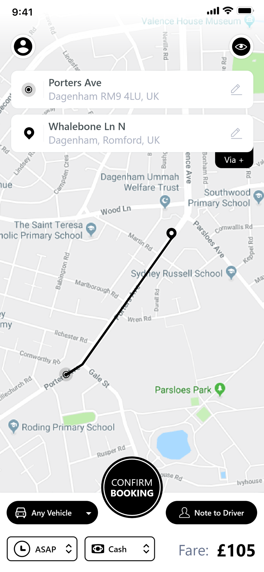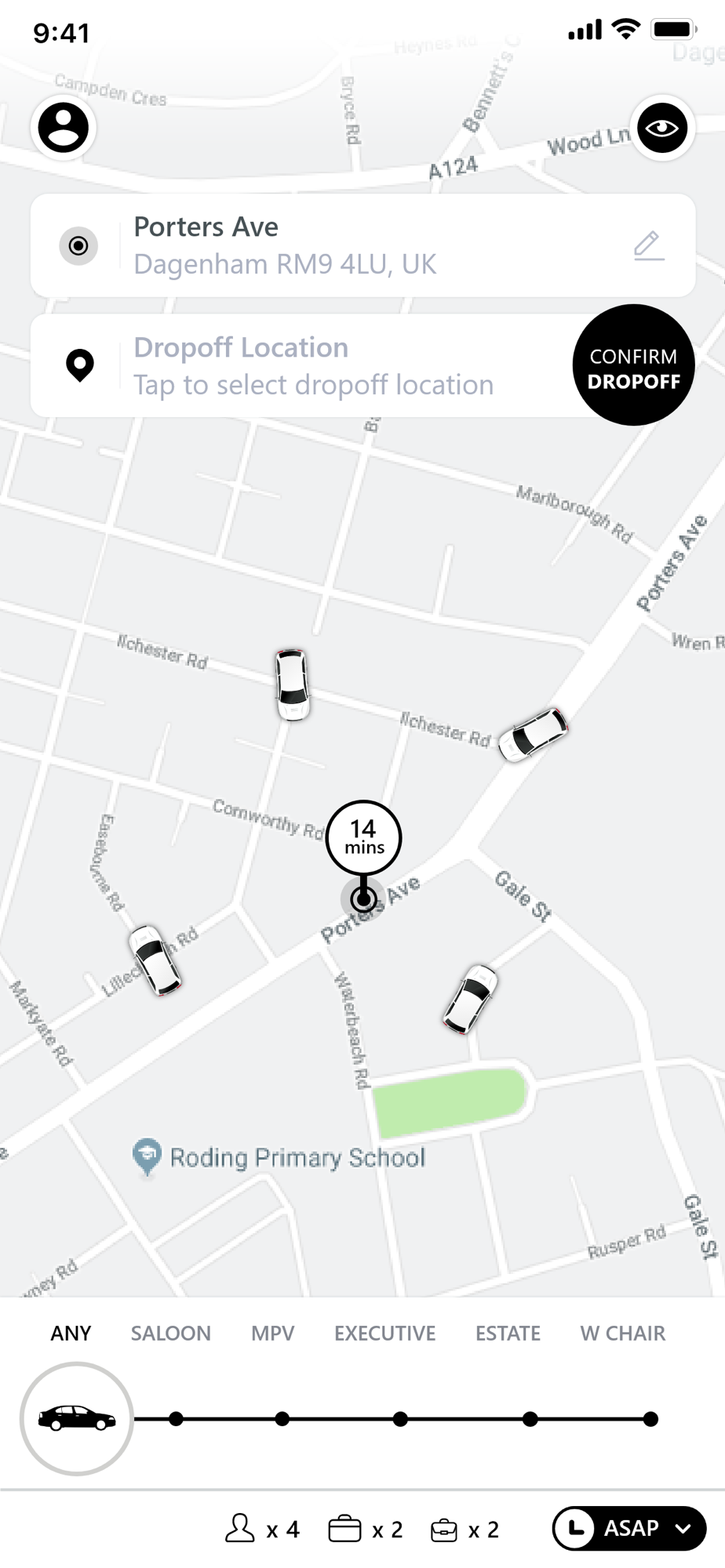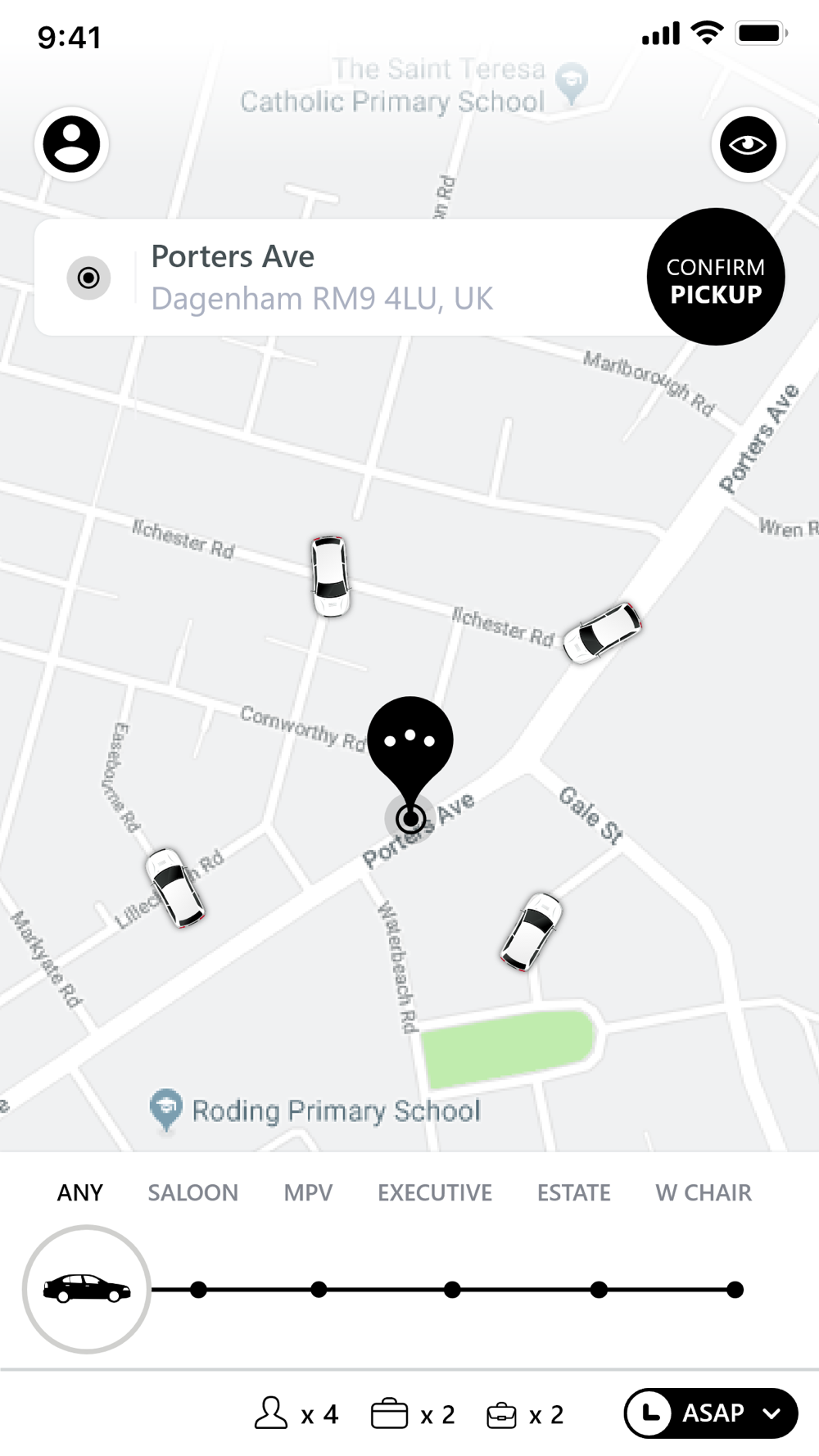 You can place the booking directly on our map, and see how many available cars there are nearby.