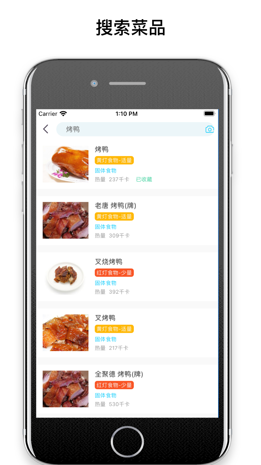 6、在搜索中输入您感兴趣的菜品,我们会及时快速的返回对应菜品数据。