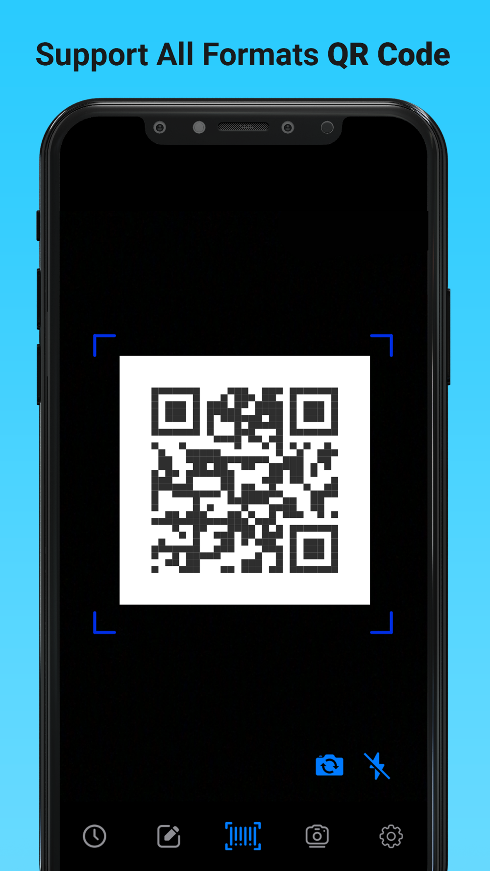 QR codes are everywhere! Turn on the flashlight for scanning in the dark or switch to front camera if your back camera cannot be used.
