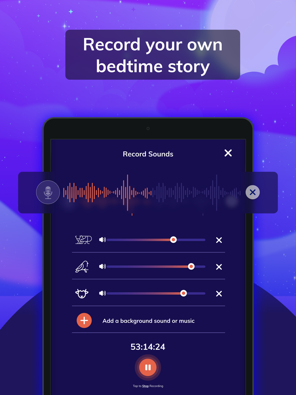 What sets us apart from other similar sounds for baby app is the ability to record and play your own lullaby or bedtime stories. Some children respond best to their parents’ voice and you might also want to use your childhood lullabies or bedtime stories for your kids.