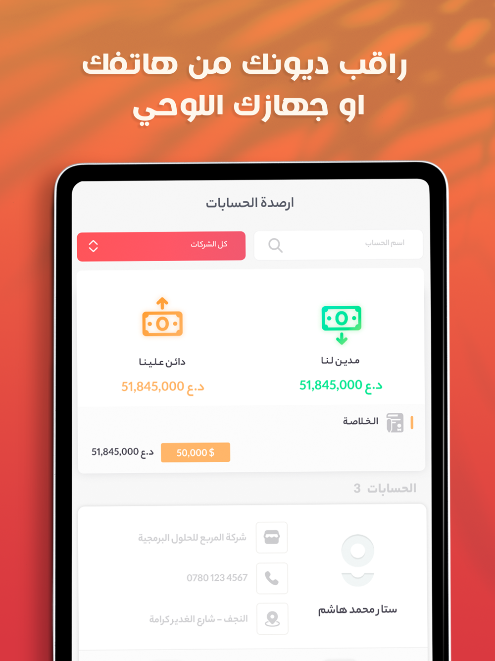 ٢. متابعة أرصدة عملائك وزبائنك بعملتين وتفاصيل دقيقة ومدى مديونية الشركة وسيولتها النقدية
