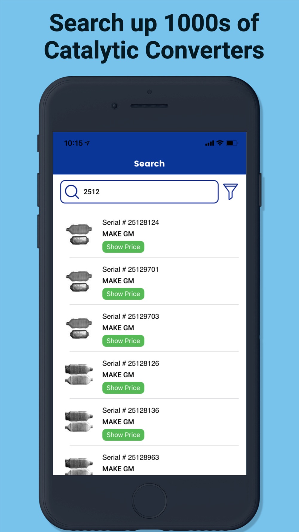 - Search for any scrap catalytic converter by typing in the serial number in the search function