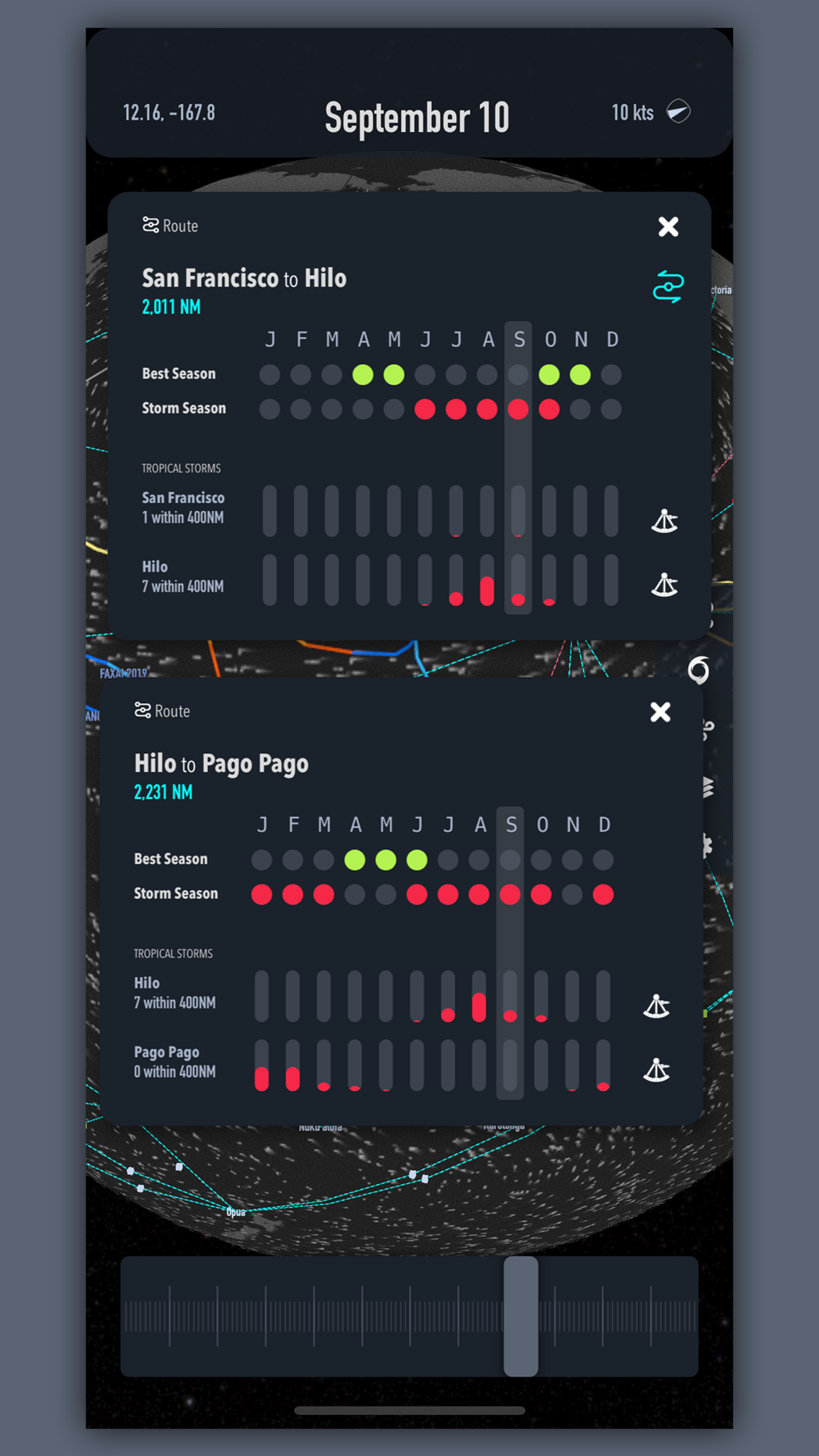 - Wind climatology show average wind per month collected from sattelite data. Also view pilot data collected from on-site observation from 1850-1970.