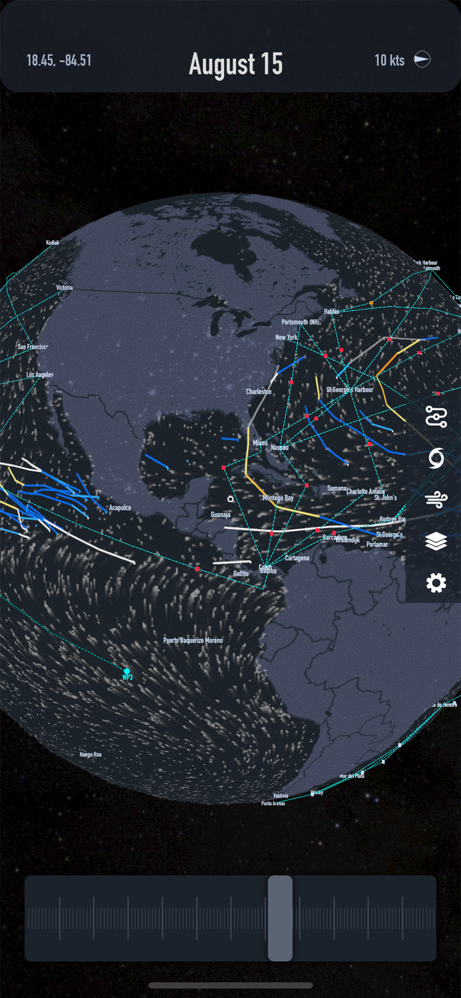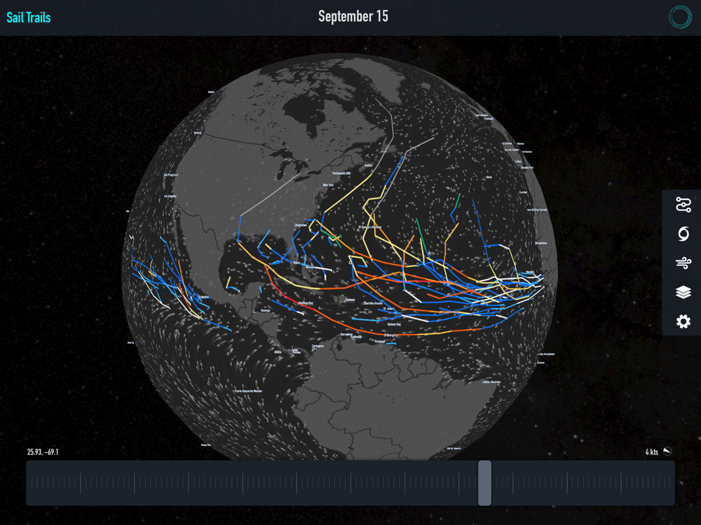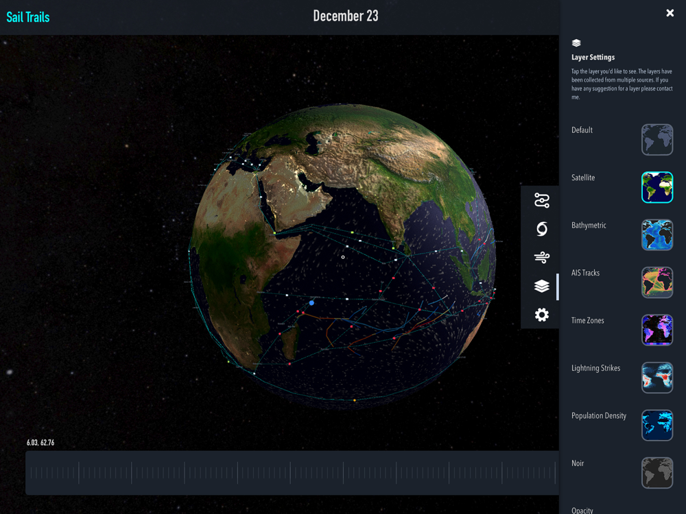 - Layers allow you to see Sattelite Imagery, Bathymetry, AIS Density, Time Zones, Lightning Strikes, and Population Density maps.