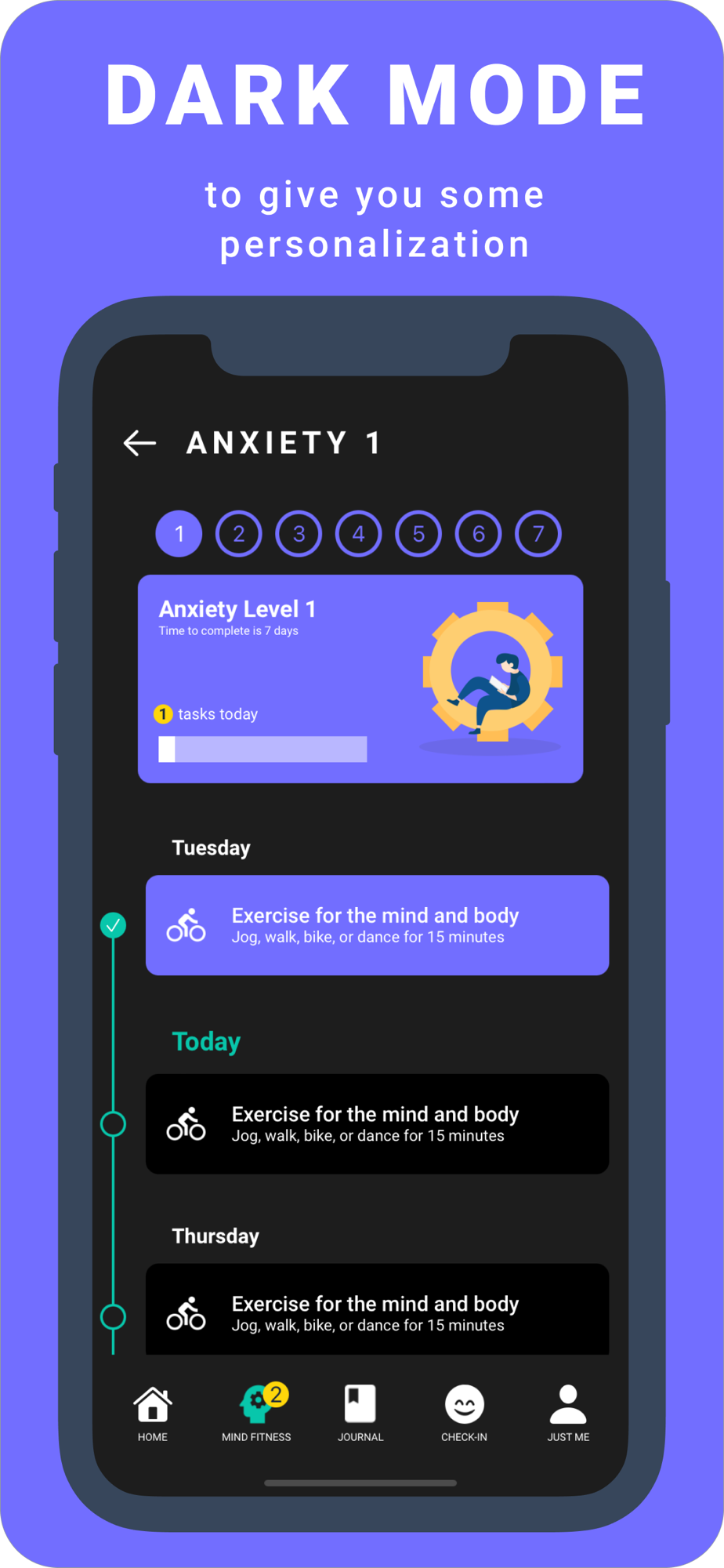 Our daily and weekly check-ins create a path for improvement by tracking where you are, helping you set goals, and guiding you toward progress week by week. With coping tools in your pocket, managing symptoms and tracking your progress becomes a whole lot easier. Day or night, when you need a little support reaching your mental health goals, you can find that support right in the app with our coaching resources.