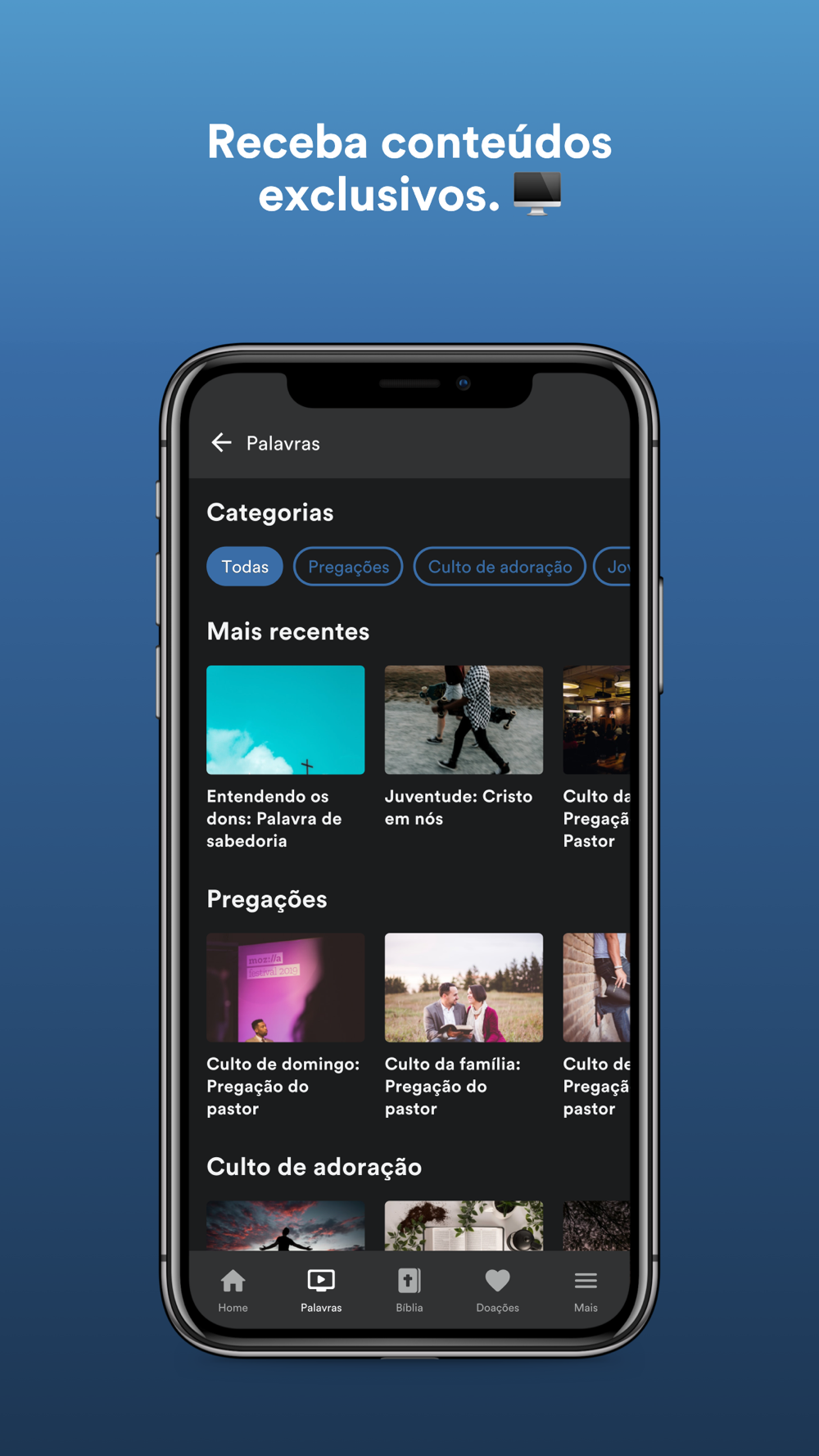 - Acompanhe a igreja de onde estiver através dos nossos vídeos, conteúdo em áudio e publicações. Baixe áudios e conteúdos exclusivos na sessão de downloads e tenha tudo offline.