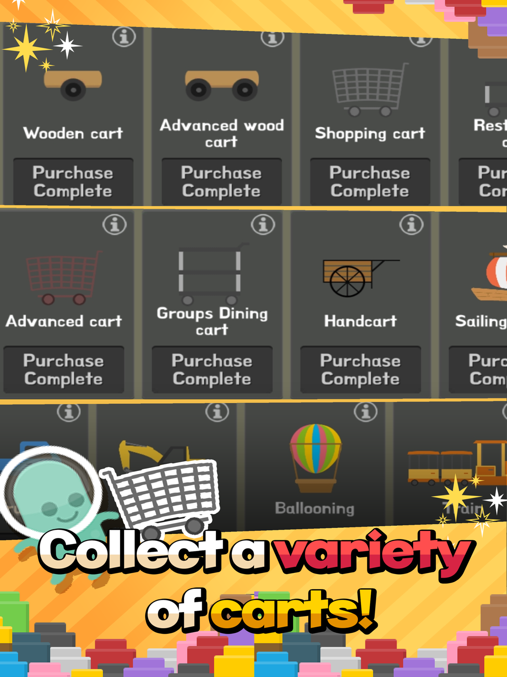 Buying a better cart increases the block and speed you transport!