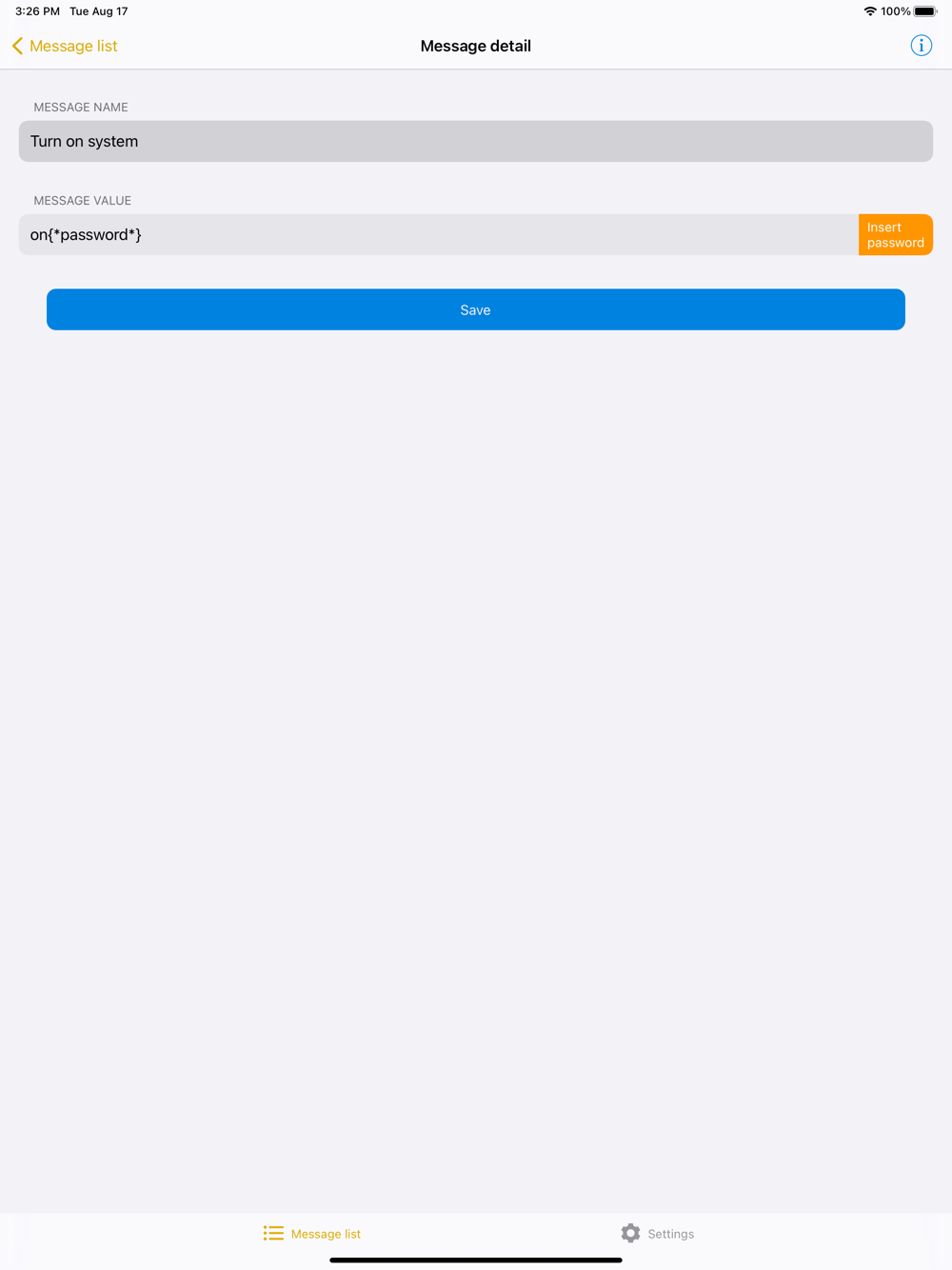 You can set the phone number and a password and this allows you to save Messages that can be sent on one-tap, in order to avoid entering particular codes and passwords every time.