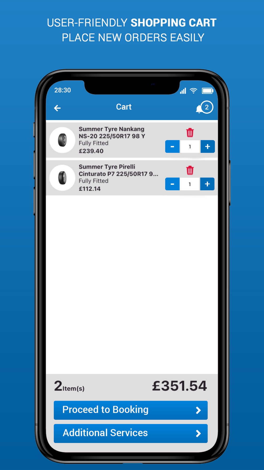 Track your MOT certificate and deadlines coming your way in one click. Get pop-up notifications for your MOT appointments and up-gradation of the vehicle. Explore through the app and find the ideal tyres from several tyre brands available for vehicles of all types in different sizes. Simply add the product or the service you wish to get in the service cart and get an overview of the prices then and there. You can also review your cart, service or product history and track other services through this app. Download the app now to avail exciting offers and great deals waiting for you in the DCM Tyre app.
