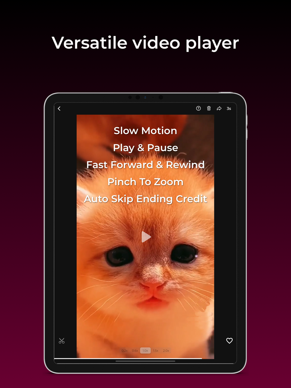 - Versatile video player for TikTok: slow motion, ending credit skip, and many more.