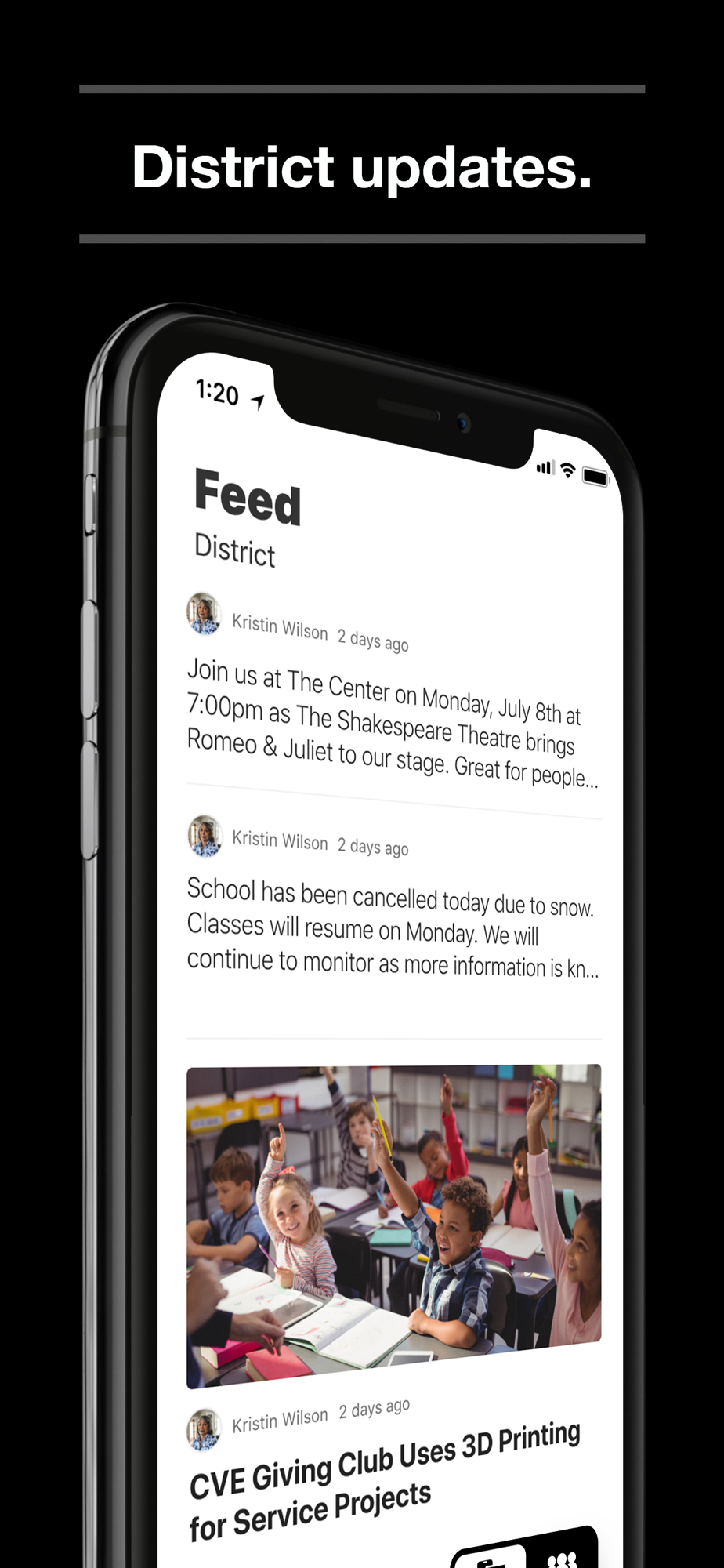 In the Live Feed is where you’ll find updates from the administration about what’s going on in the district right now. Whether that’s celebrating a student’s success, or reminding you about an upcoming deadline.