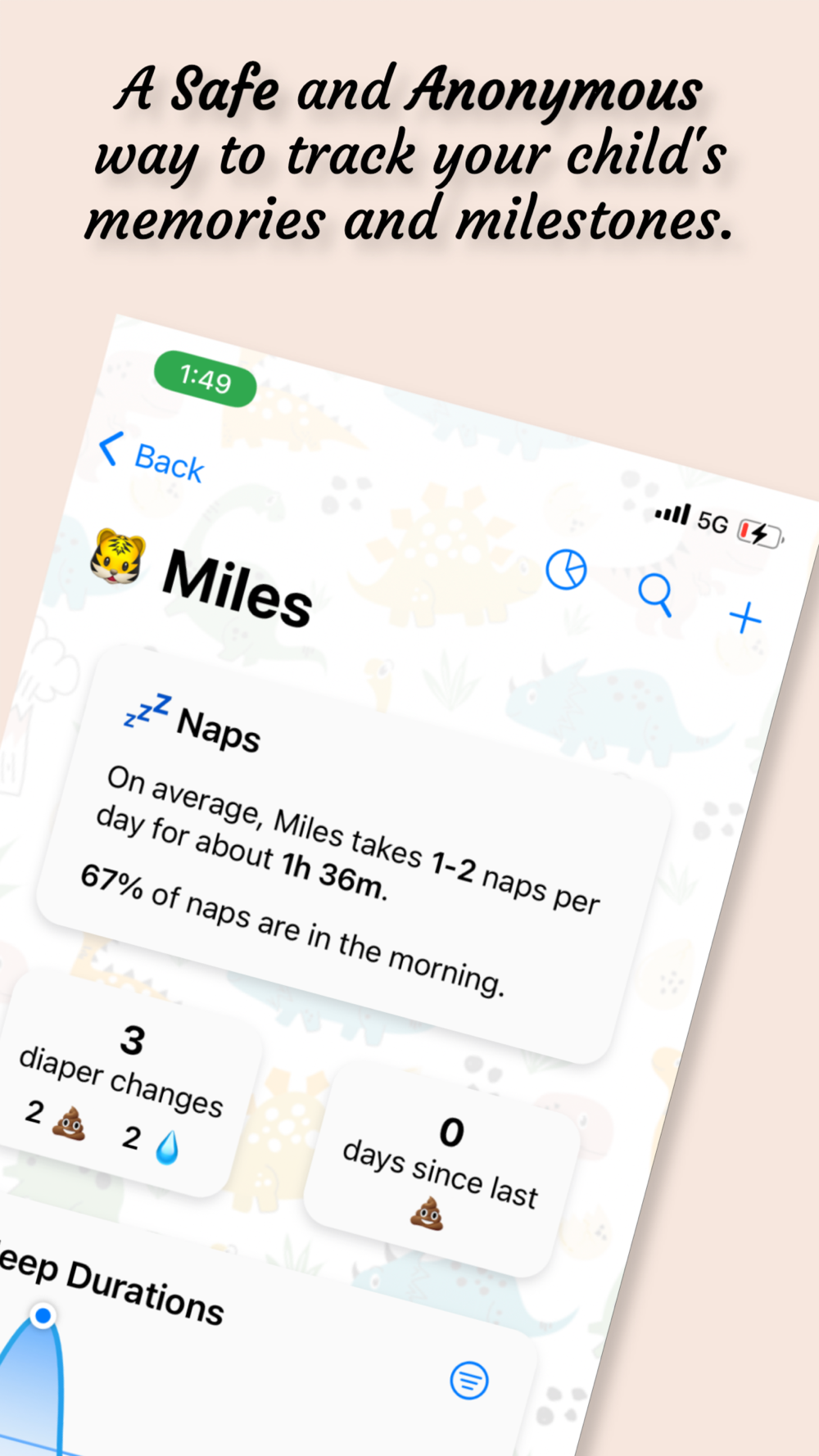 BabyTime provides a *safe* and *anonymous* way for you to track your child's activity and milestones.