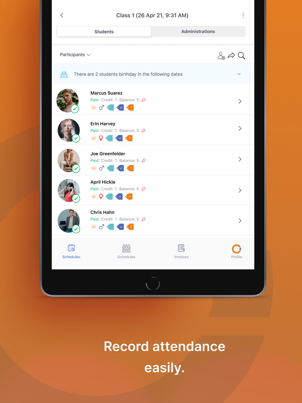 OClass Advantage mobile app is an admin mobile application to allow you to take your business on the go. You can easily check your attendance or reschedule an appointment while you’re out in a commute. Find out why using OClass gives you an advantage over the rest.