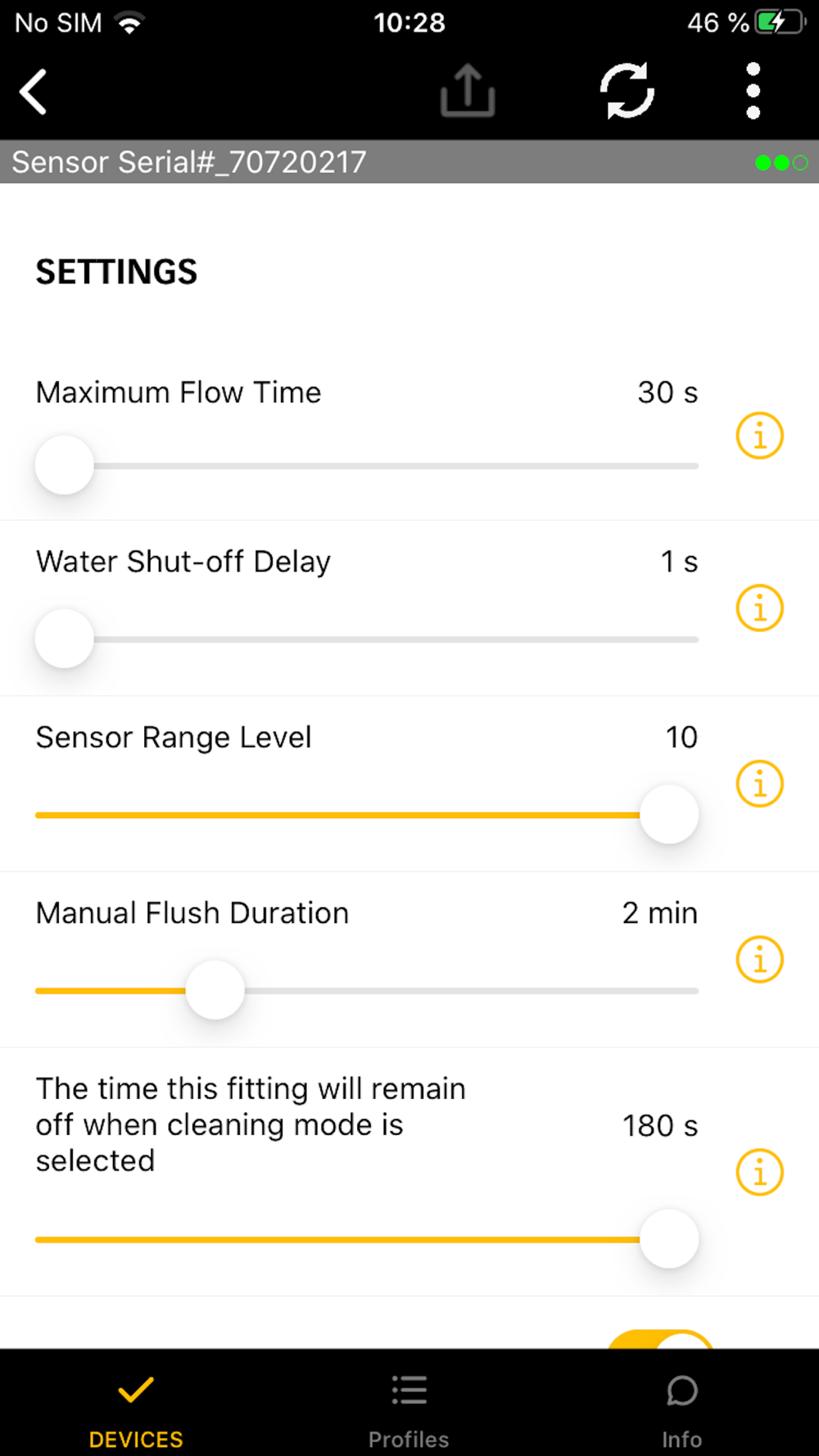 With the KEUCO sensor app individual user profiles can be created for the electronic sensor fittings. A whole variety of settings and requests can be controlled.