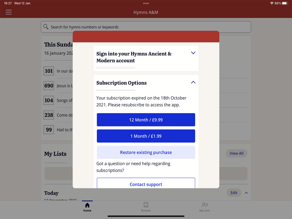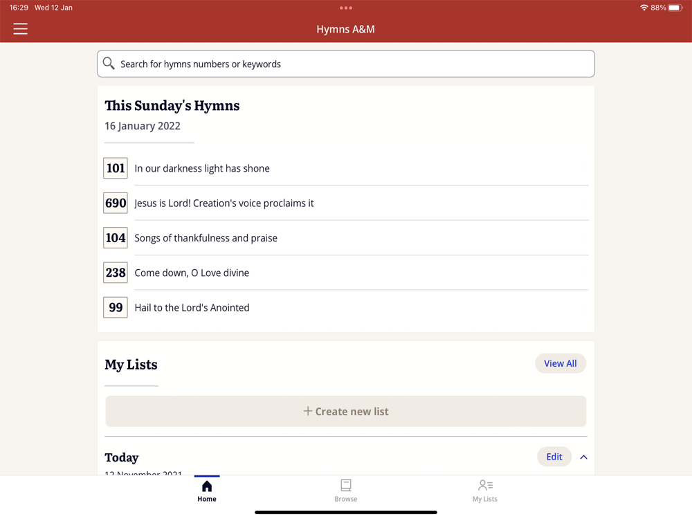 - Build your own lists of hymns - and sync your choices across devices by signing in with your Hymns Ancient & Modern account.