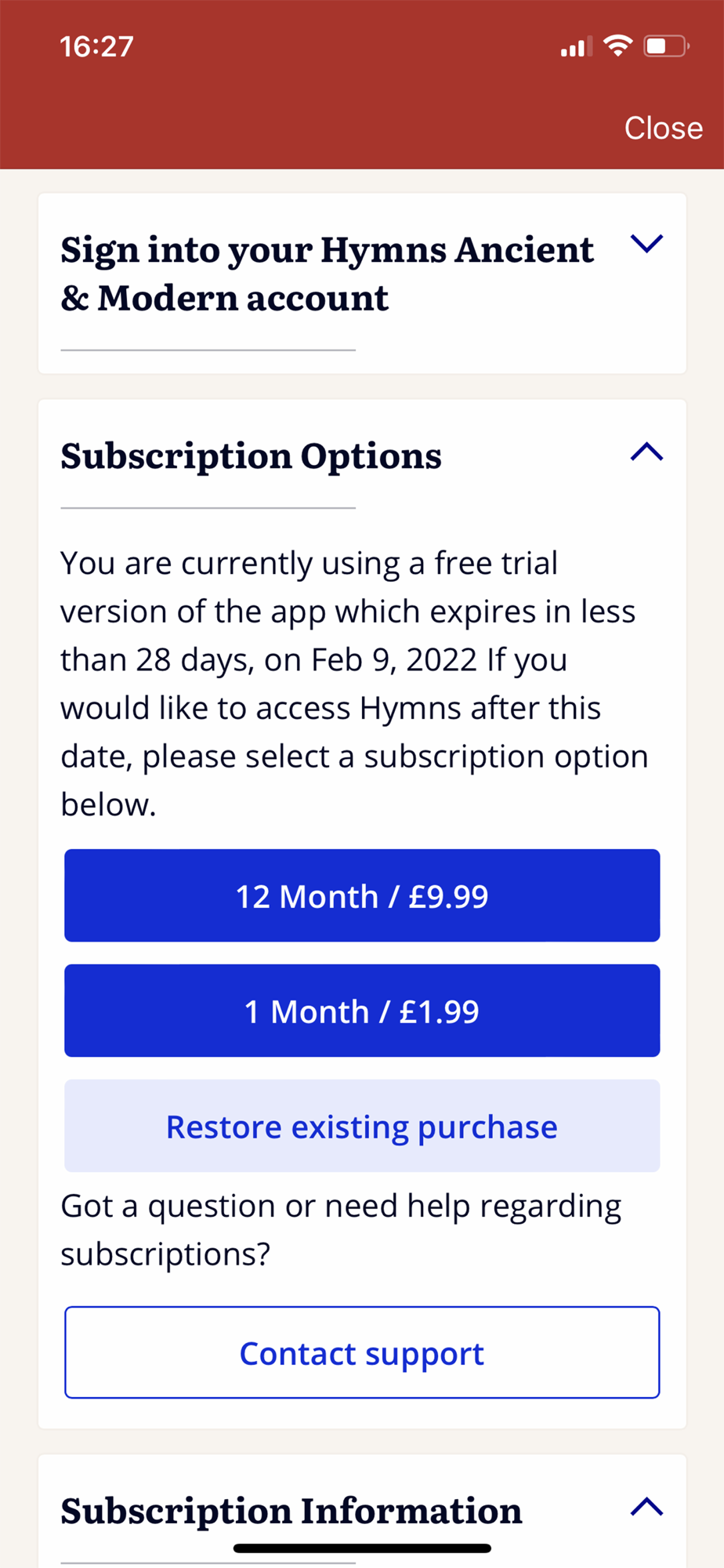 SUBSCRIPTION OPTIONS FOR HYMNS ANCIENT & MODERN