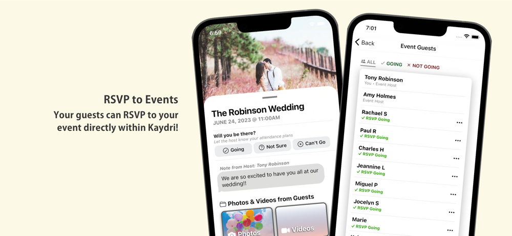 • Guests can RSVP directly through the app, making it easy to keep track of who's coming.