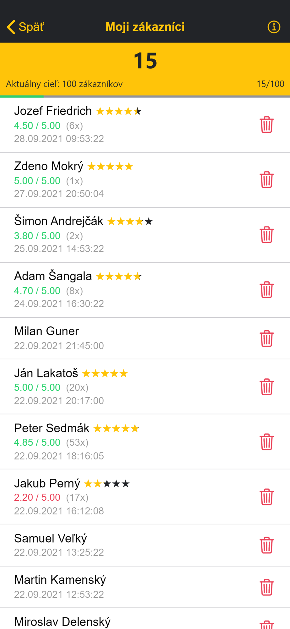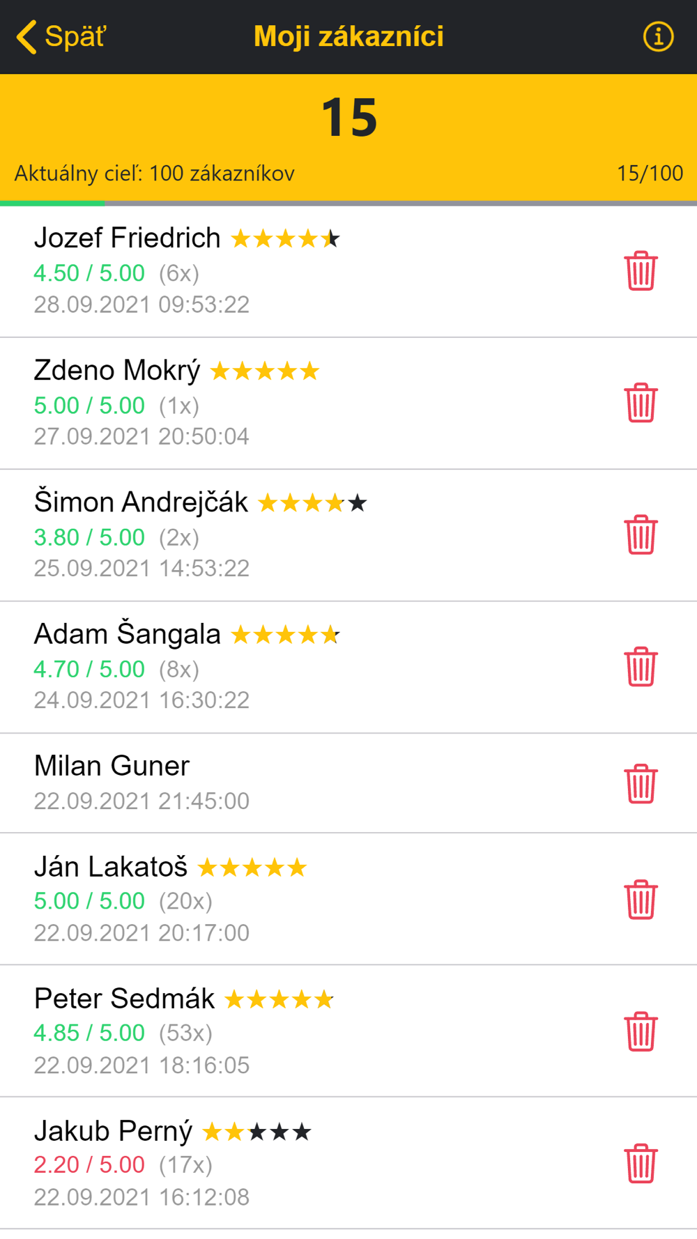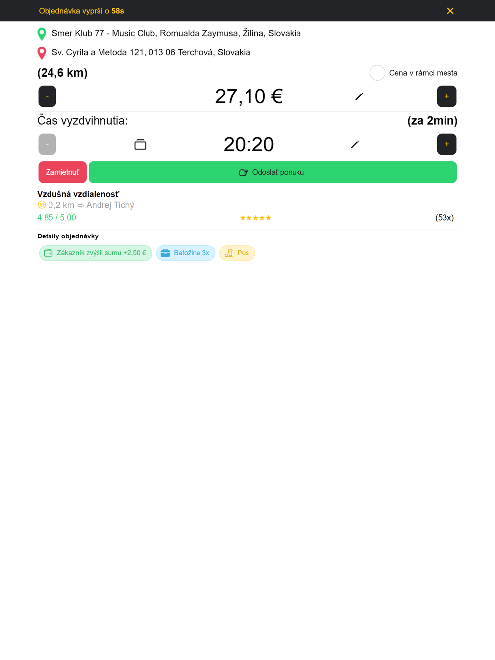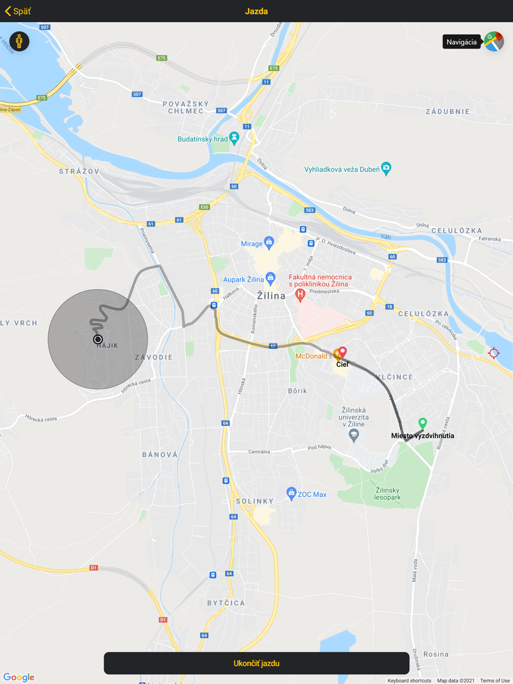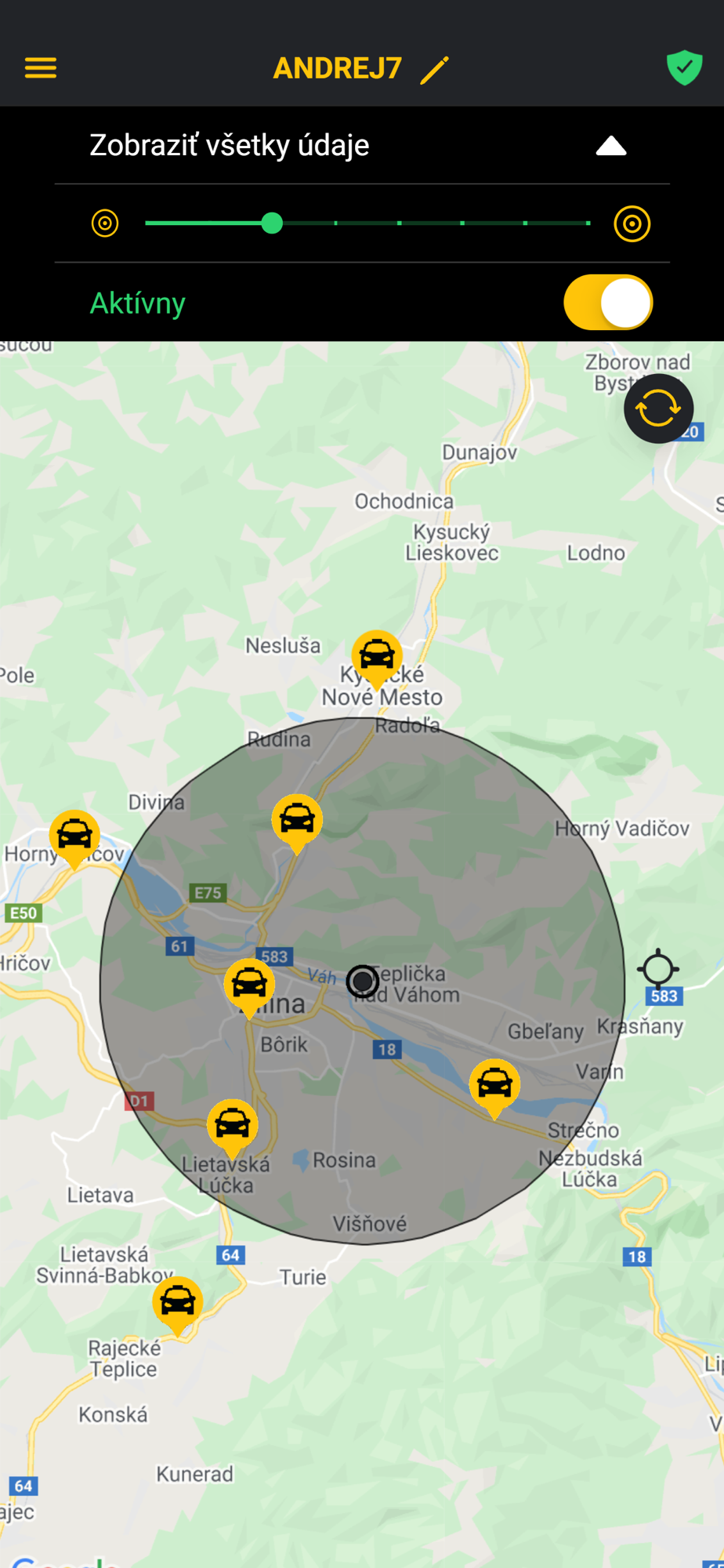-možnosť zvoliť okruh doručovaných objednávok (5km, 10km, 15km, 20km)