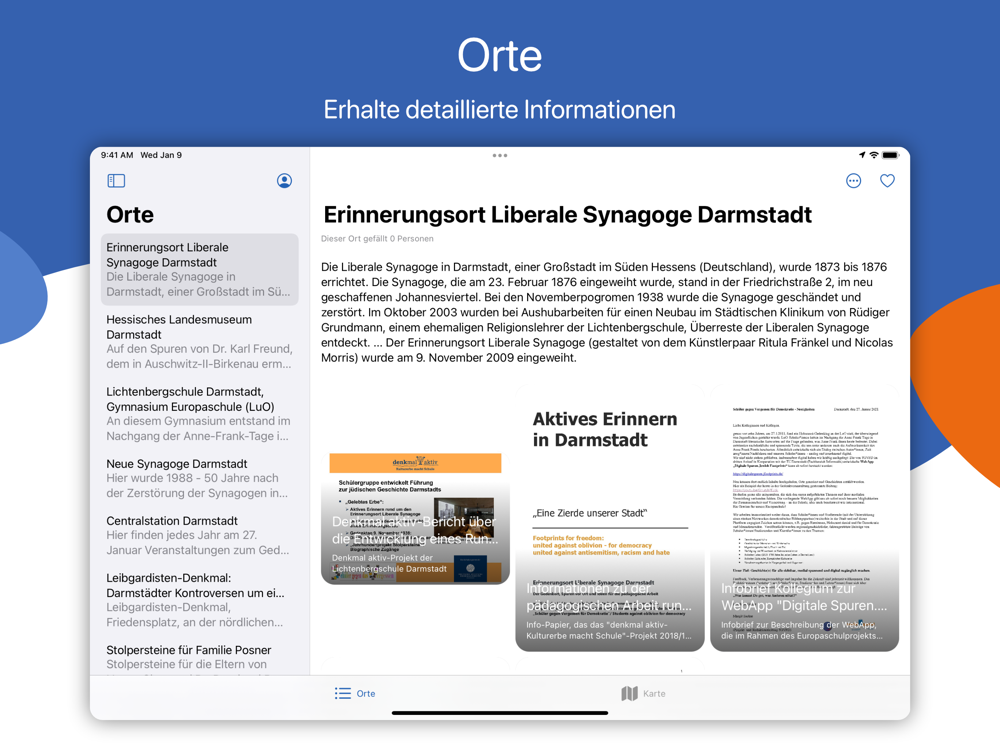 • Finde weiterführende Informationen in Form verschiedener Medienarten zu den Orten