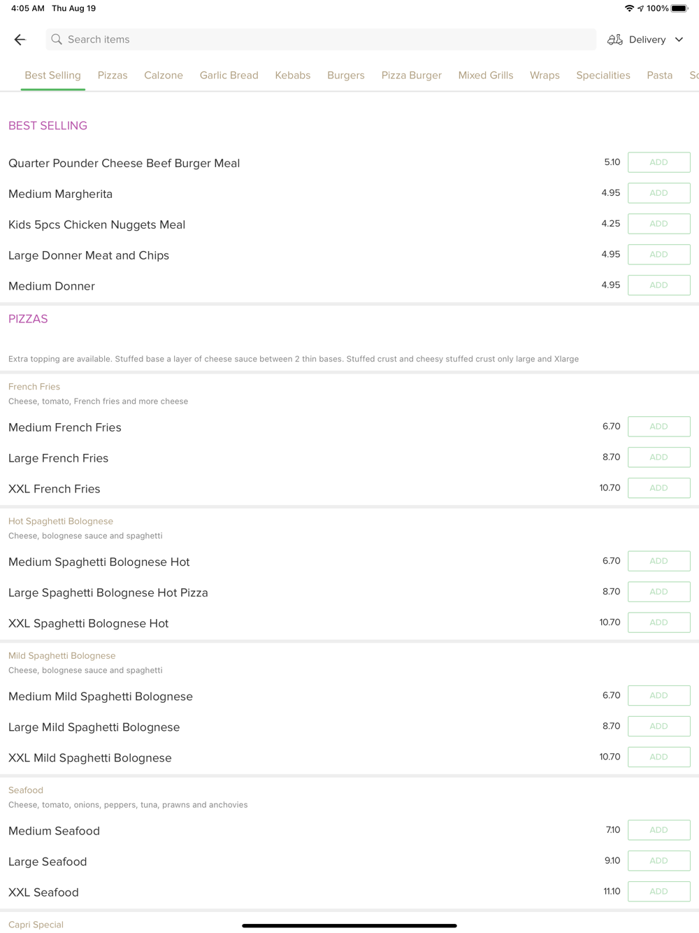 Order food online from one of the finest takeaways in town. Here at Capri Pizzeria in IMMINGHAM, and are proud to serve the surrounding area. We serve a variety of food such as pizzas, burgers, wraps, kebabs and more. You can find our whole menu on our app, filled with mouth-watering dishes and catering for all kinds of different tastes!