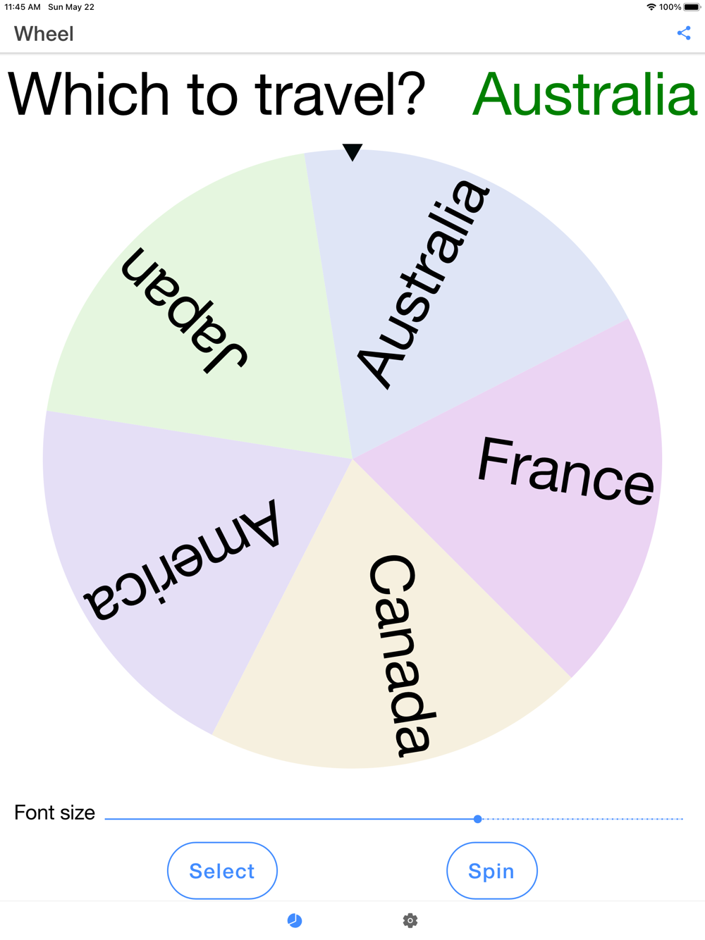 Spin to see what be selected