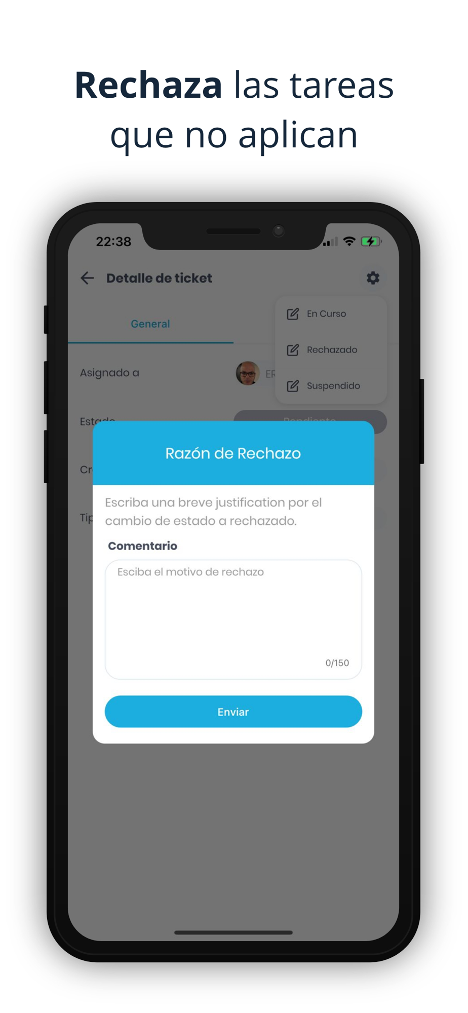 Con esta gestión de tareas podrás crear tareas a personas dentro de tu equipo y dar seguimiento del cumplimiento de la misma.