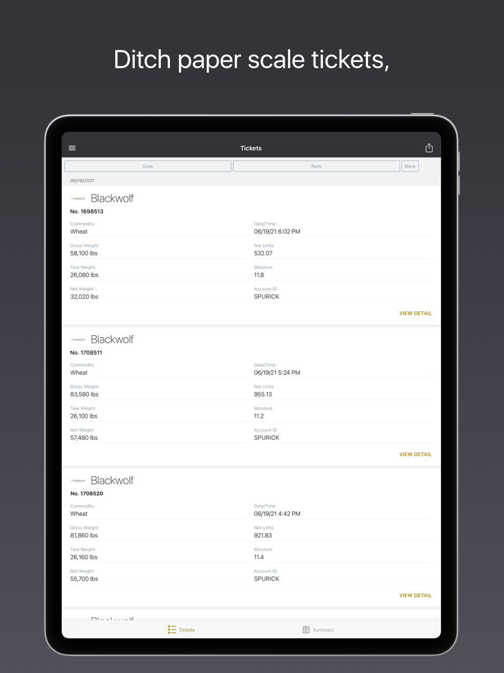 Scale Tickets: Easily access and filter scale tickets