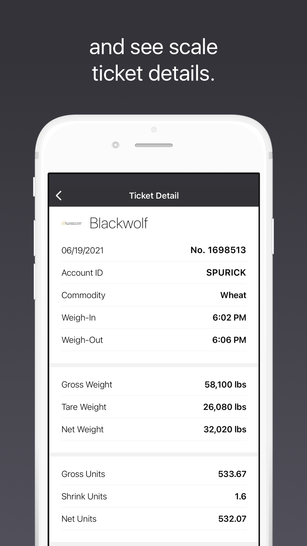 The Ellsworth Coop app is an essential mobile solution that connects your operation to your grain facility, providing real-time, actionable information to help you manage and grow your business.