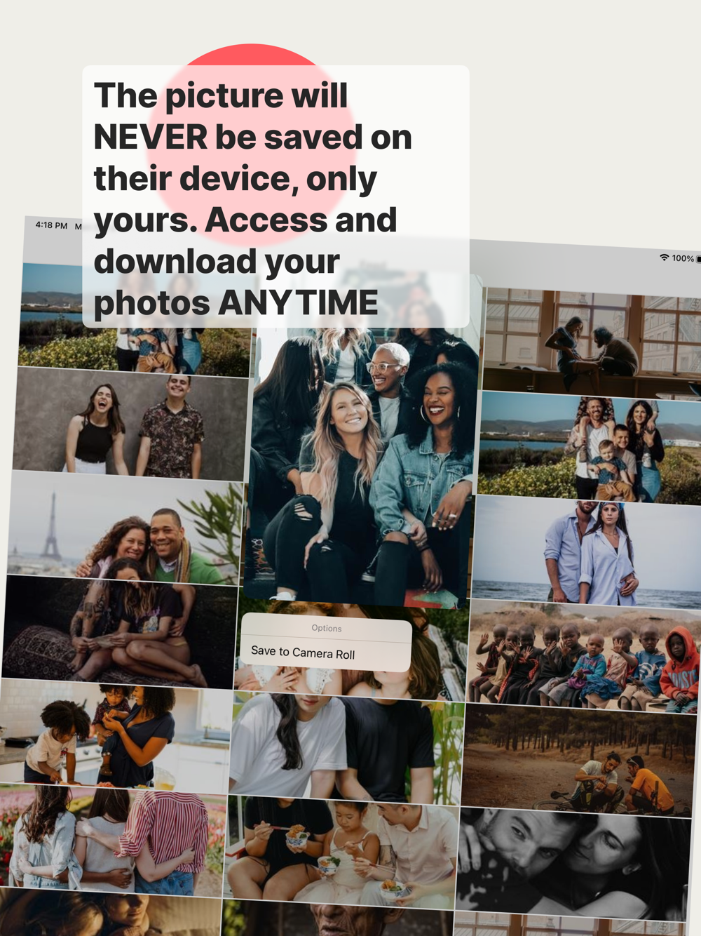 Friendly Photo allows a friendly passerby to take a picture of you without having to share devices. Ask someone to scan the QR code under "Take a Picture" and they'll be able to take as many pictures as you want on their own phone without a single picture being stored on their device. Instead the pictures are safely uploaded to your Feed! There, you can access them and download them anytime you want. COMPLETELY FREE!