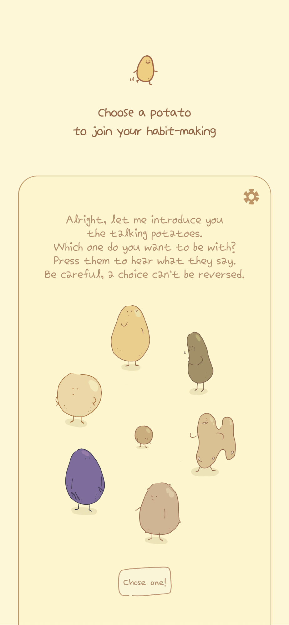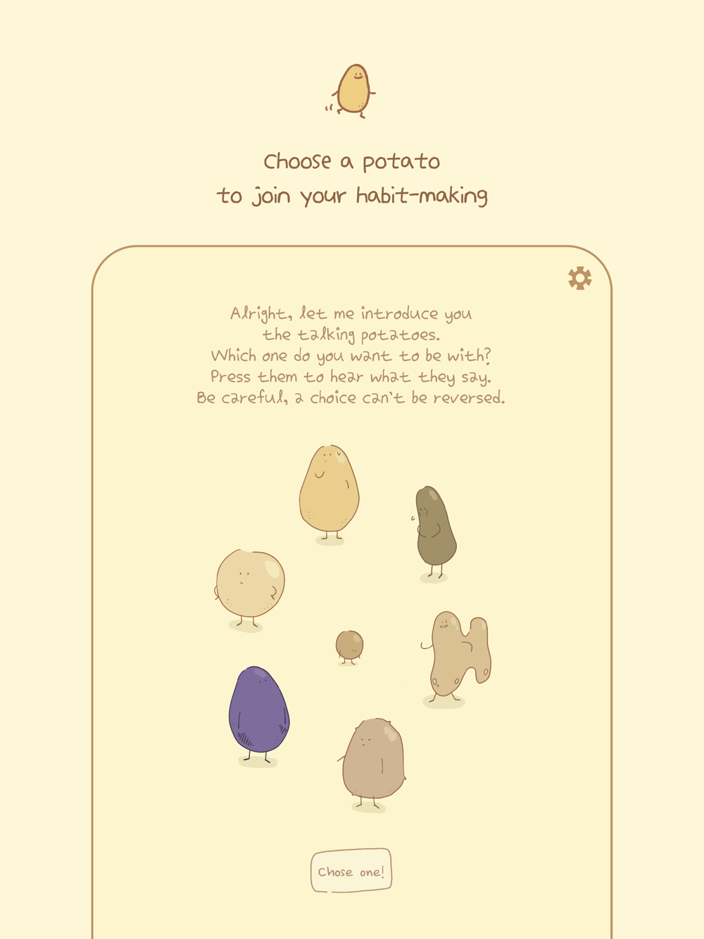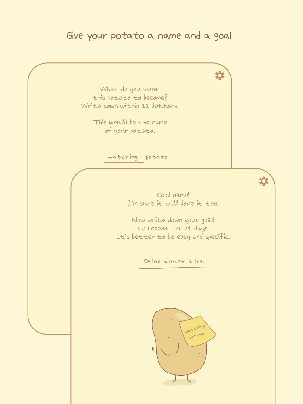 1. Set your goal and do it for 21 days. After 21 days, your potato friend will find its new goal, and you will get yourself a habit!