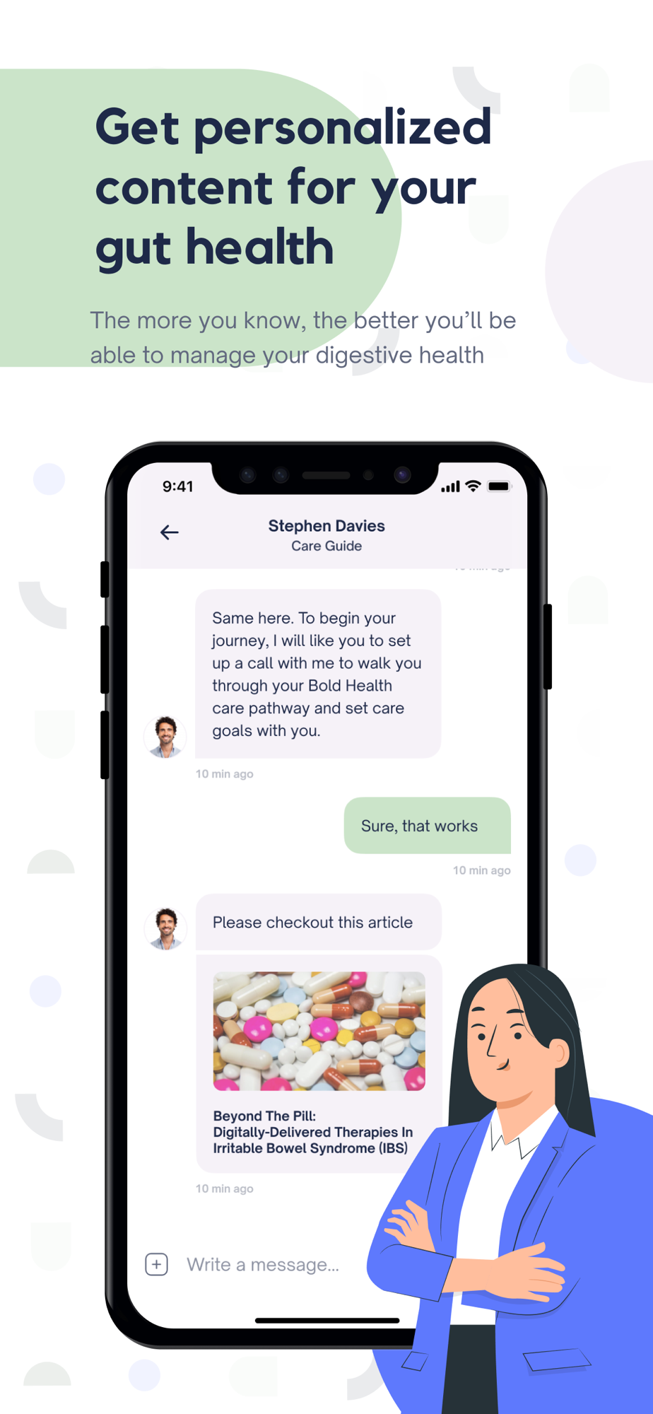 Bold Health enables you to manage your gut flare-ups, anxiety, and other uncomfortable gastrointestinal symptoms on the go.