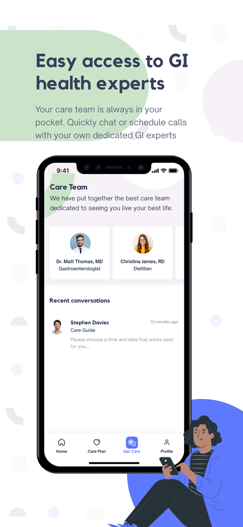 Get on-demand support from a health coach, dietician and gut care specialist.
