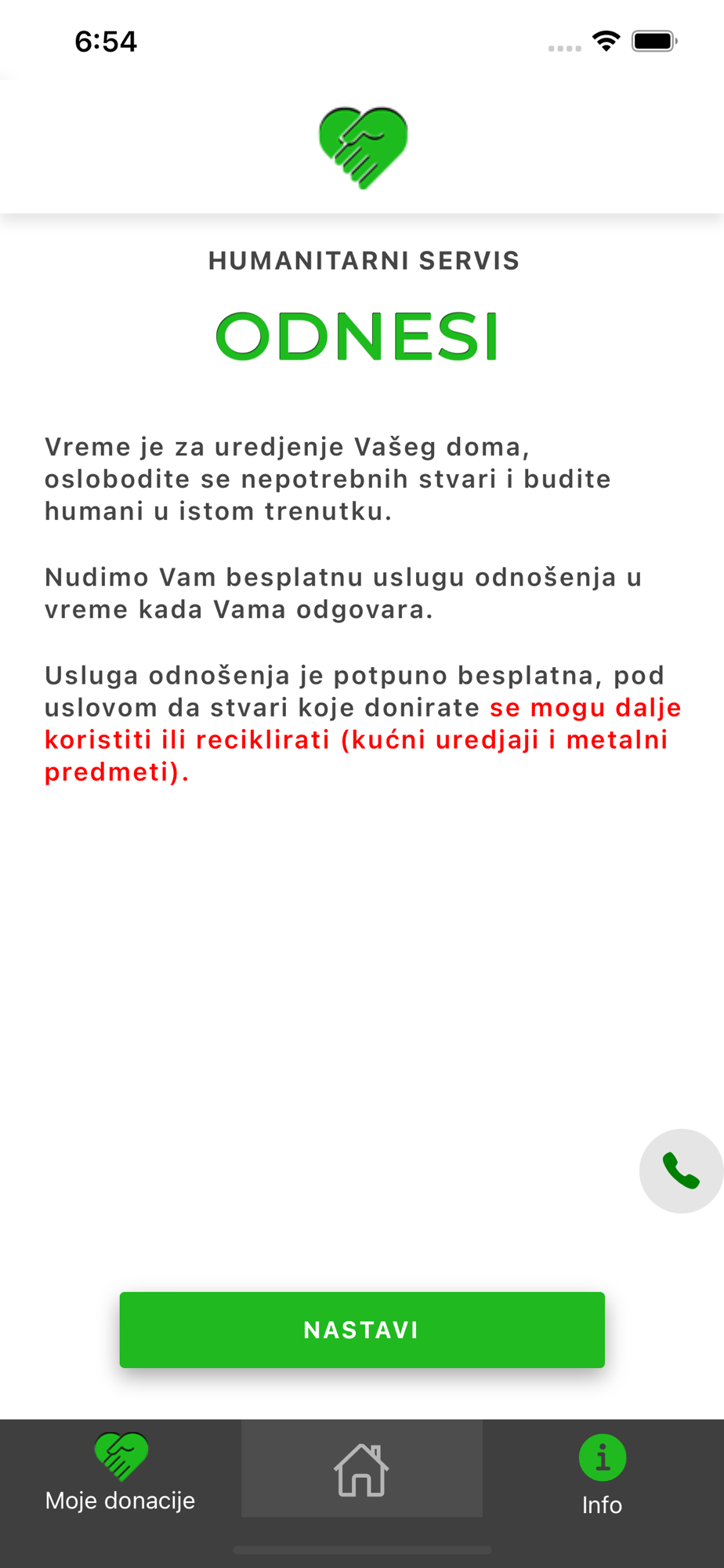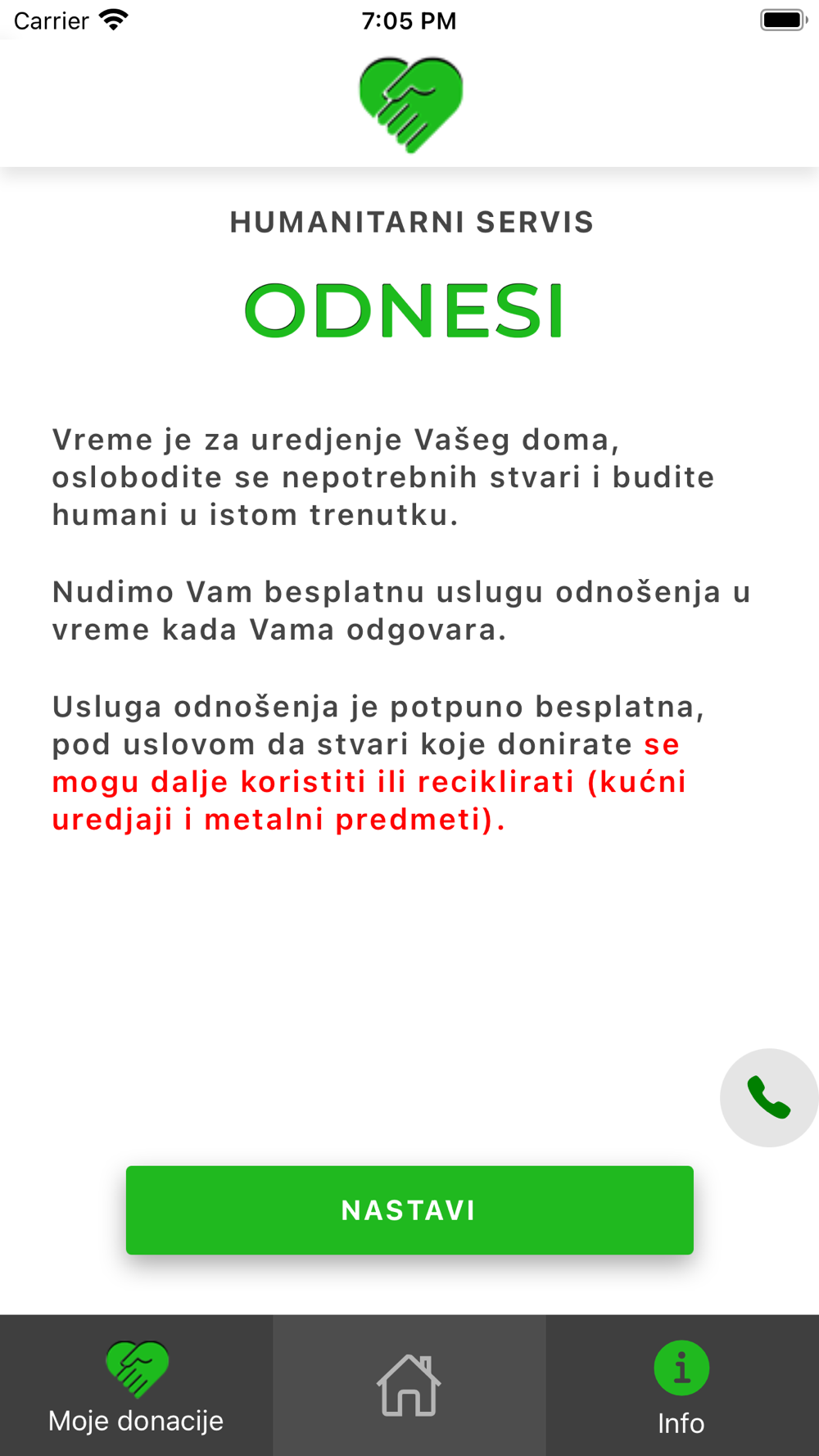 Usluga odnošenja je potpuno besplatna, pod uslovom da stvari koje donirate, mogu da se dalje koriste ili recikliraju (kućni uređaji i metalni predmeti).