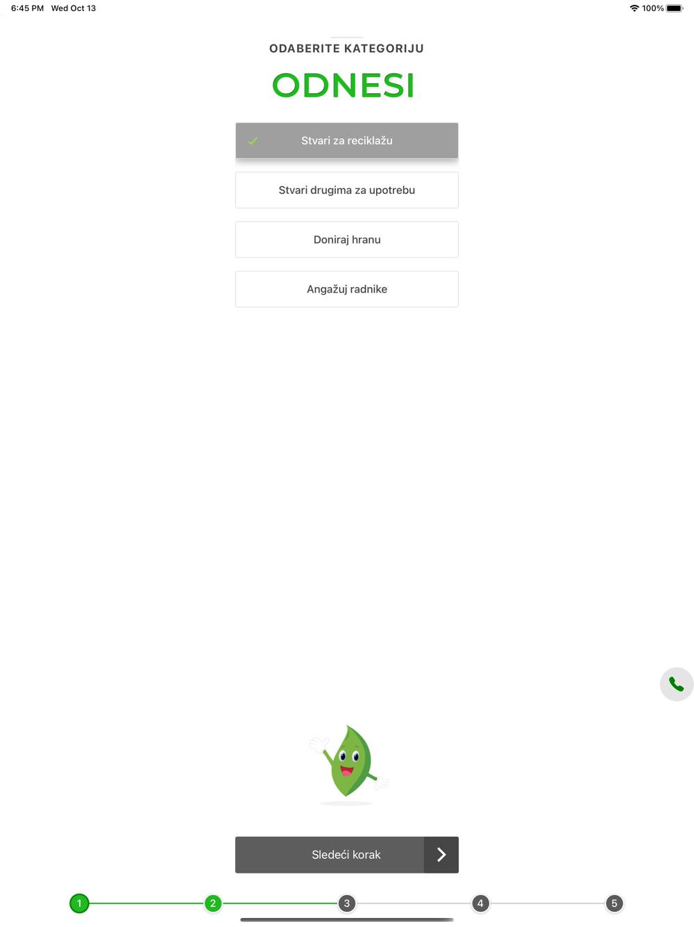 Humanitarni servis "Odnesi" ima ulogu da uspostavi organizovani sistem uzajamne pomoći izmedju građana i građanki u Srbiji. Kroz donaciju nepotrebnih stvari iz domaćinstava, koje imaju upotrebnu vrednost ili se mogu reciklirati u reciklažnim centrima u kojima će raditi građani i građanke koji pripadaju ranjivoj društvenoj grupi.