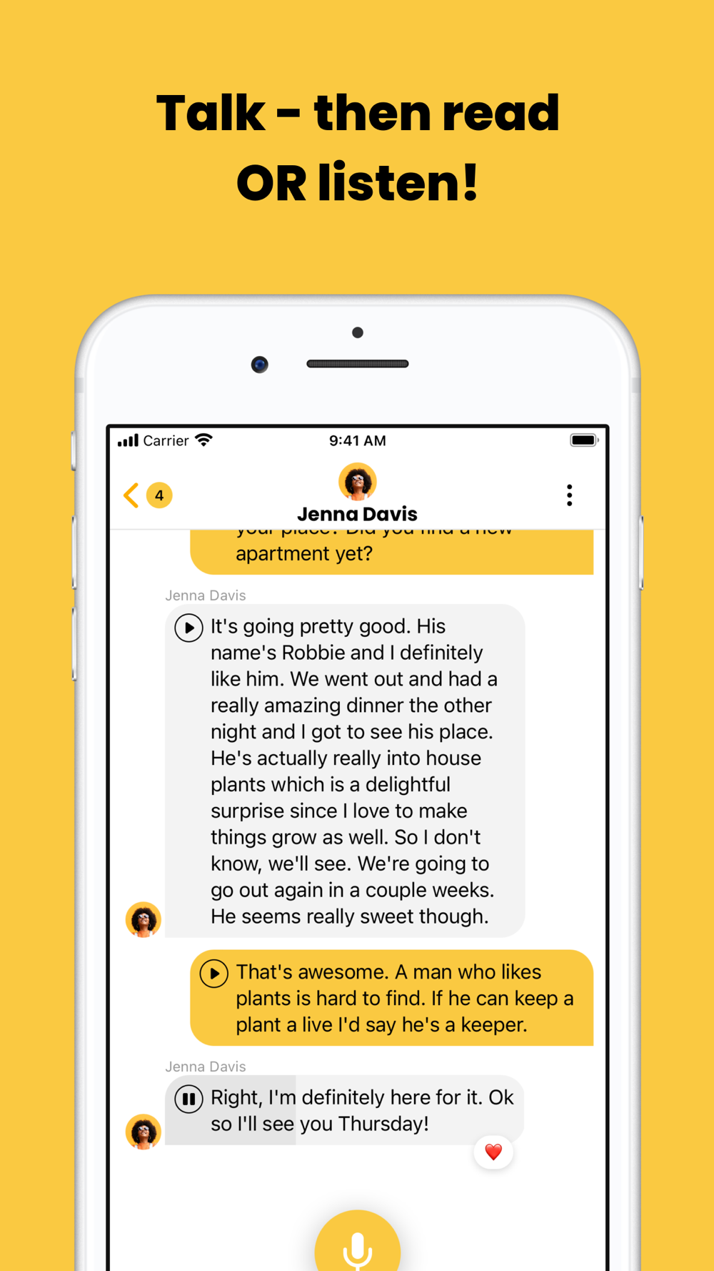 With Howdy you don’t have to choose between sending an audio message or text. You get both! Quickly compose messages with your voice and recipients can choose to read or listen. Faster and more personal than typing on a keyboard, Howdy is the best new way to chat and stay connected with friends and family during your busy day. Just hit record, talk and send.