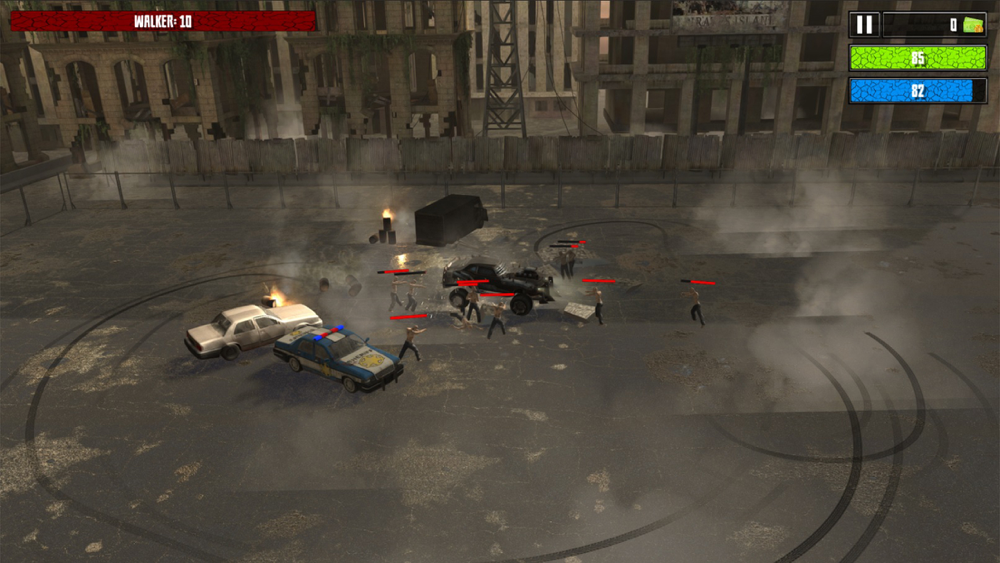 Drift around the arena and wipe away the zombies. Earn coins, and unlock & upgrade new vehicles, unlock & upgrade new weapons. Be prepared well and bring more chaos on next waves!