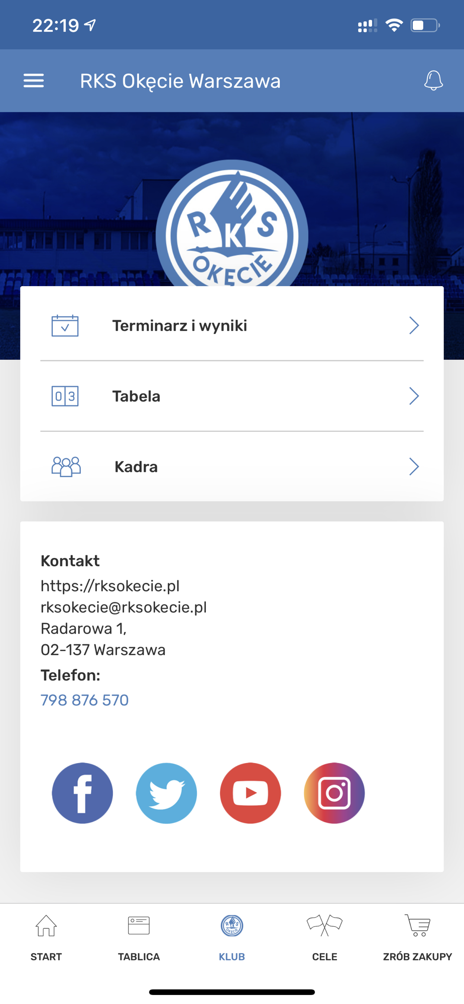 • rejestrujesz się w aplikacji RKS Okęcie Warszawa,