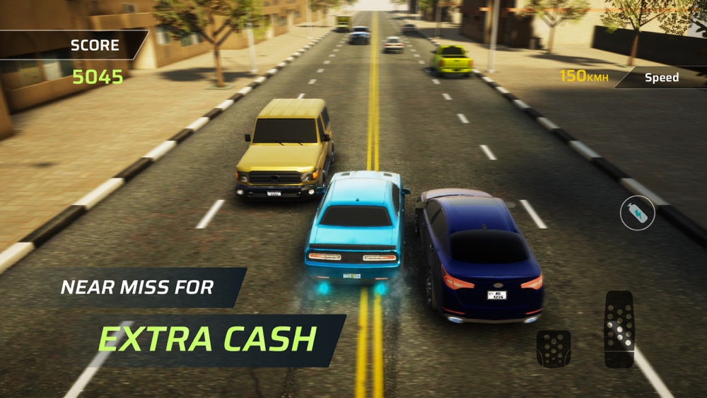 - When driving over 100 kmh, overtake or Near Miss cars to get bonus scores and cash